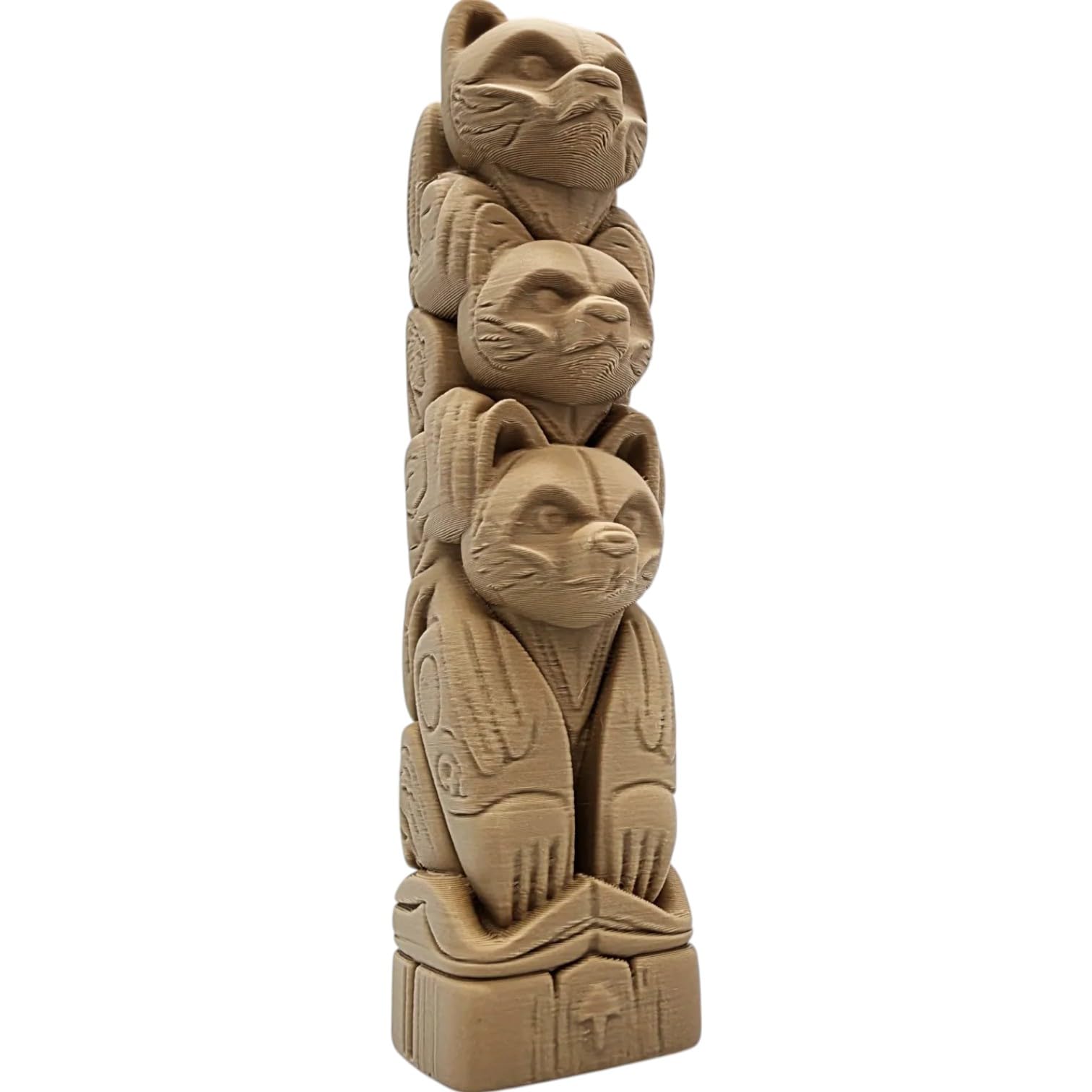 The 3 Bear Totem Pole Figurine – Wood-Style Vertical Totem Sculpture with Tribal-Inspired Bear Faces is a decorative teddy bear figurine from 3DCentral’s collectible series. 3D printed on our Quebec-based print farm using premium PLA, this piece captures the timeless charm of stuffed bears through modern manufacturing — textured surfaces mimic stitching and fur patterns with remarkable fidelity.