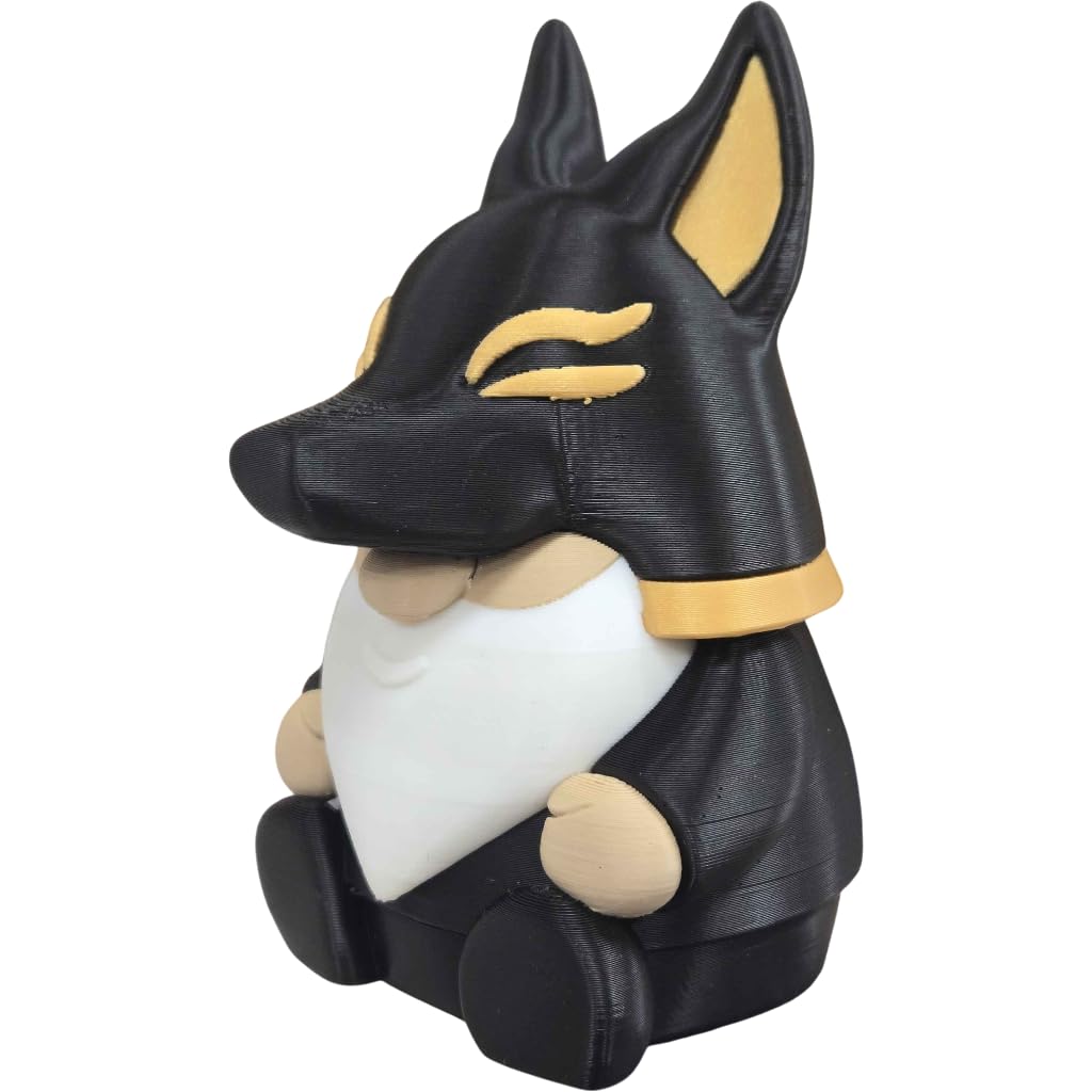 The Anubis Gnome Figurine – Egyptian Mythology-Inspired Collectible Gnome with Gold Accents for Shelf or Desk Display is a collectible gnome figurine from 3DCentral, printed on our industrial print farm in Quebec. This piece features the intricate beard textures, expressive details, and charming poses that make gnome figurines beloved by collectors worldwide. Printed in premium PLA filament for vibrant color and lasting durability.
