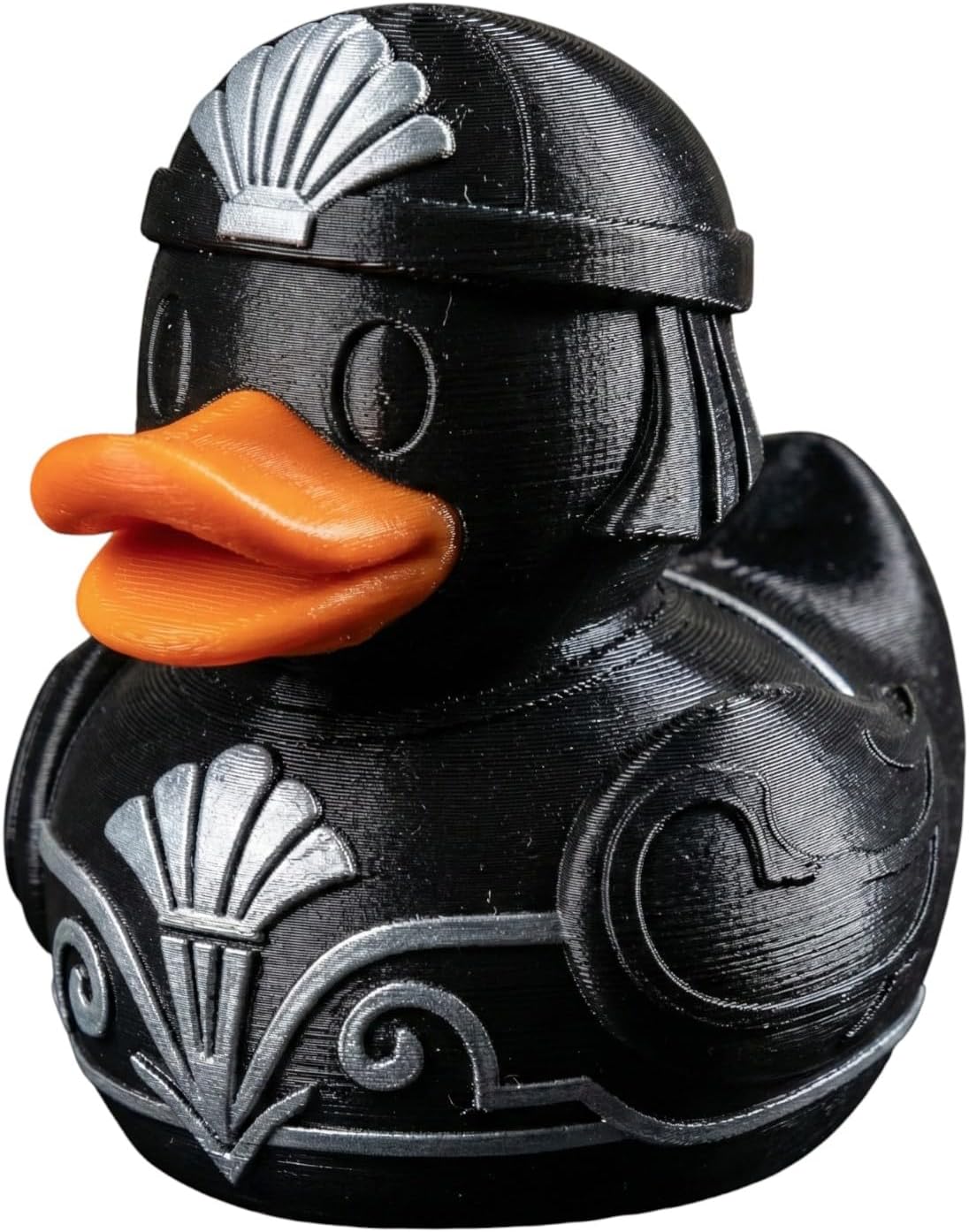 Meet the Art Deco Duck Figurine – Black & Silver Collectible Duck Statue with Roman Helmet Detailing – Decorative Display Piece for Desk or Shelf — a handcrafted addition to our Ducks catalog. Produced on demand at our Laval, Quebec print farm, each unit is printed in premium PLA with attention to surface quality and color detail. Our duck collection celebrates creativity and collectibility, with designs ranging from classic to wildly imaginative.