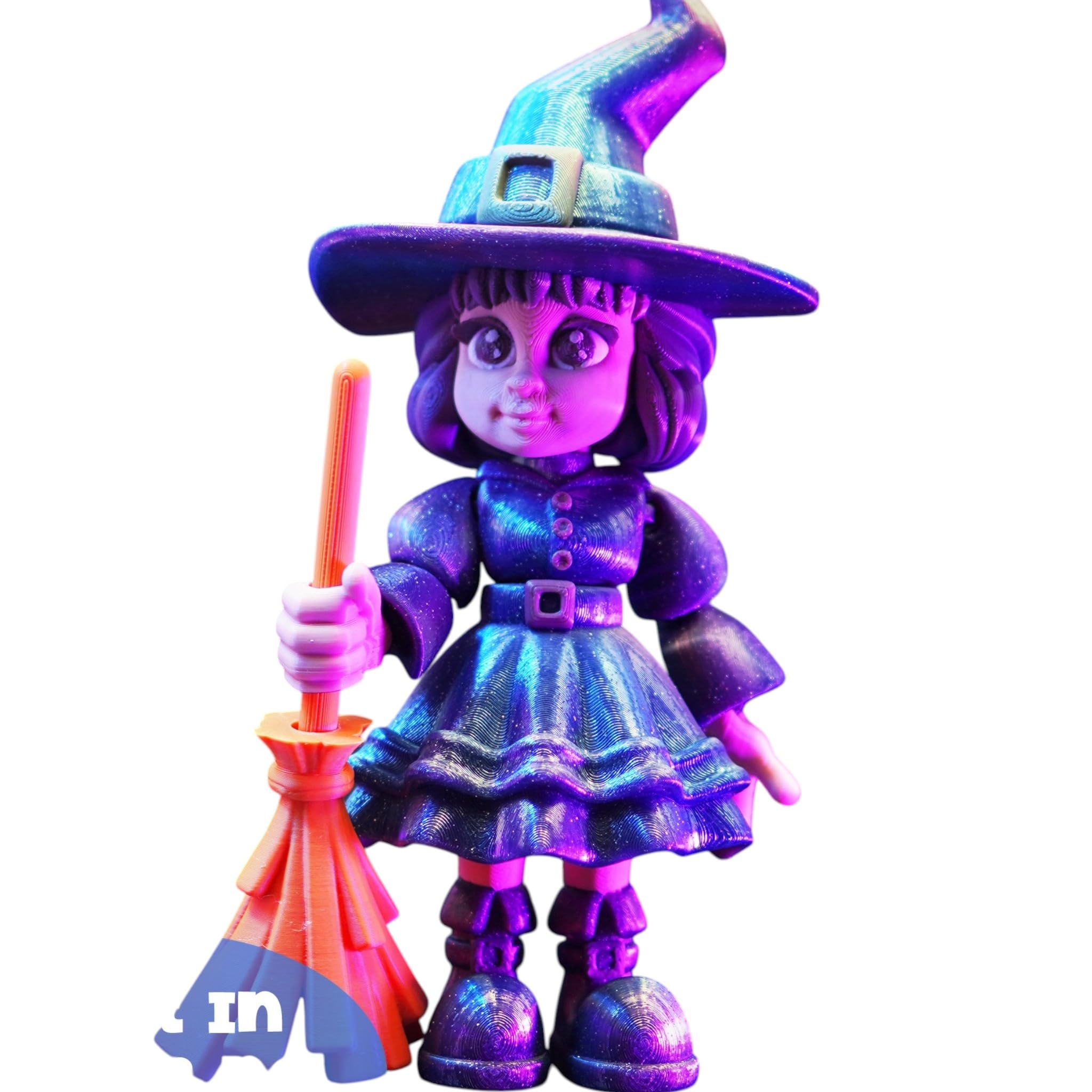 About the Articulated Baby Witch Figurine with Broom – Print-in-Place Halloween-Inspired Collectible Character