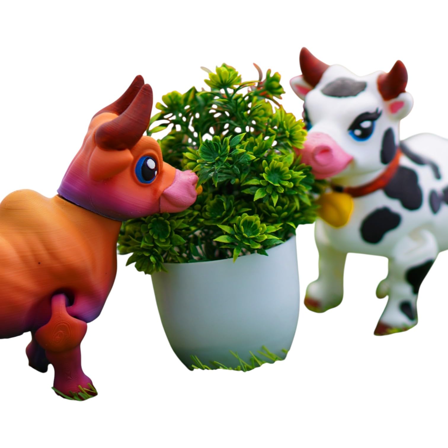 Experience the Articulated Cow & Bull Figurine 2-Pack – Flexible Farm Animal Collectibles with Poseable Joints – Fun Desk Decorations or Display Models — a print-in-place articulated collectible from our Quebec print farm. Every joint is functional from the moment you open the package, with no glue, screws, or assembly needed. This engineering marvel is produced in premium PLA filament with settings calibrated for optimal joint movement and body rigidity.