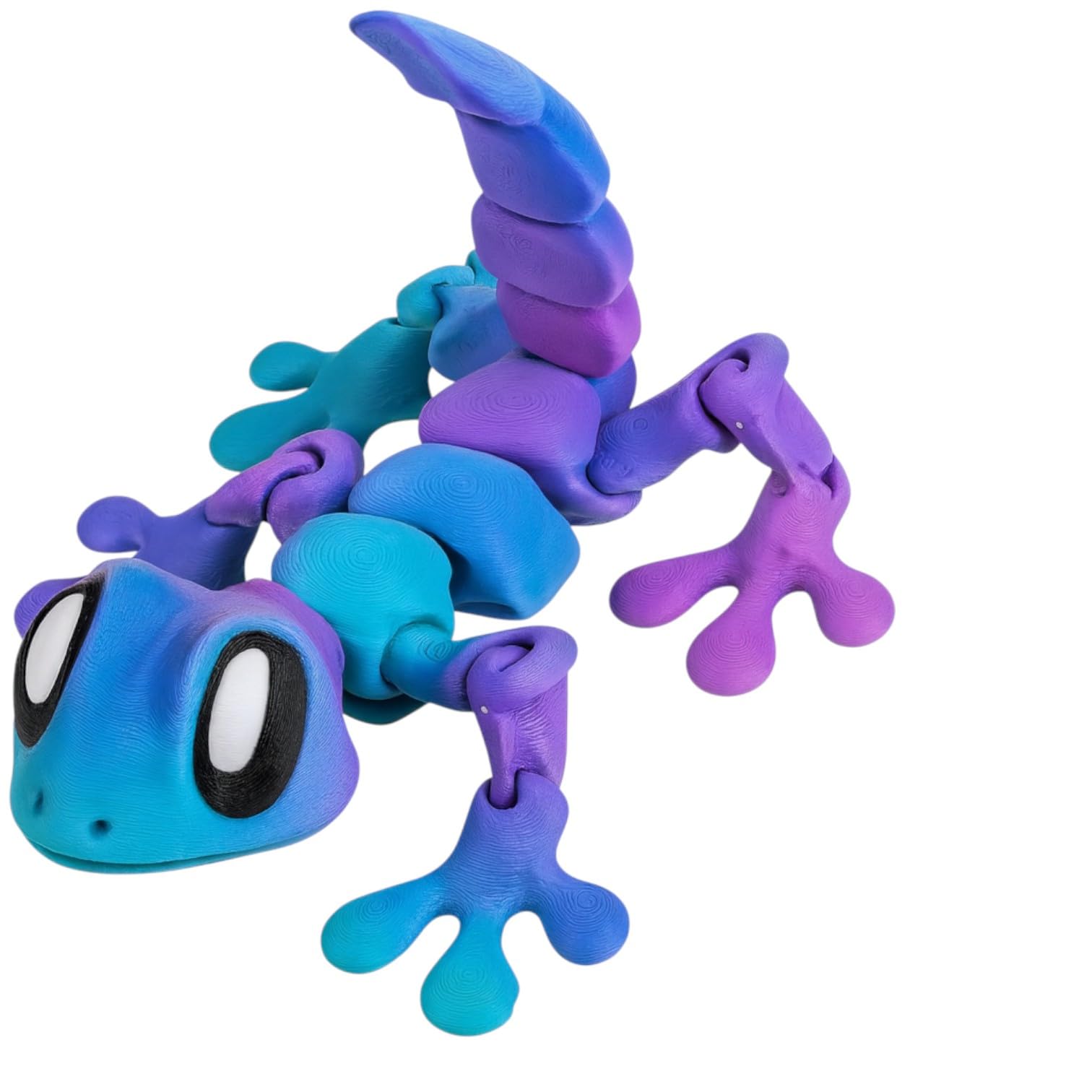 This Articulated Magnetic Blob Gecko Fidget – Flexible Lizard Desk Toy & Fridge Magnet Décor – Anxiety Relief Sensory Gift for Teens & Adults features print-in-place articulation — multiple moving joints produced in a single, uninterrupted print. Manufactured at our Laval, Quebec facility, each articulated piece balances flexibility at the joints with structural strength in the body, creating a poseable collectible that holds its position for display.