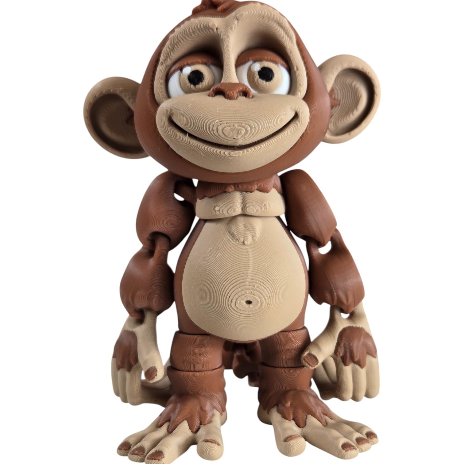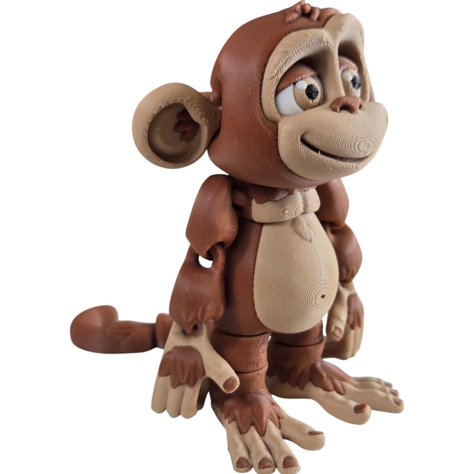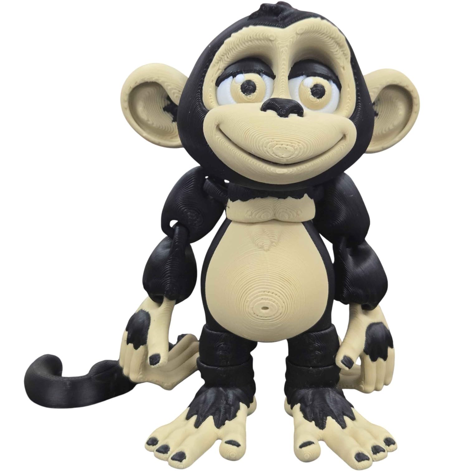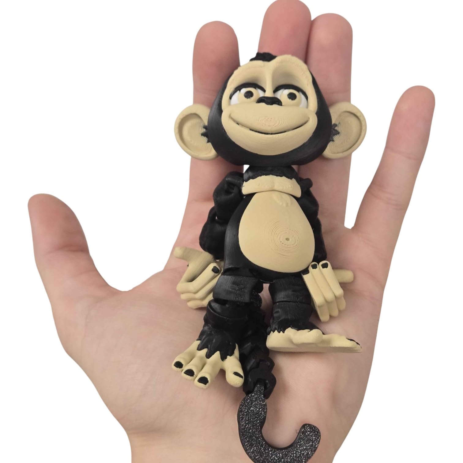 This Articulated Monkey Figurine – Playful Desk Fidget for Teens & Adults – Stress Relief & Collectible features print-in-place articulation — multiple moving joints produced in a single, uninterrupted print. Manufactured at our Laval, Quebec facility, each articulated piece balances flexibility at the joints with structural strength in the body, creating a poseable collectible that holds its position for display.