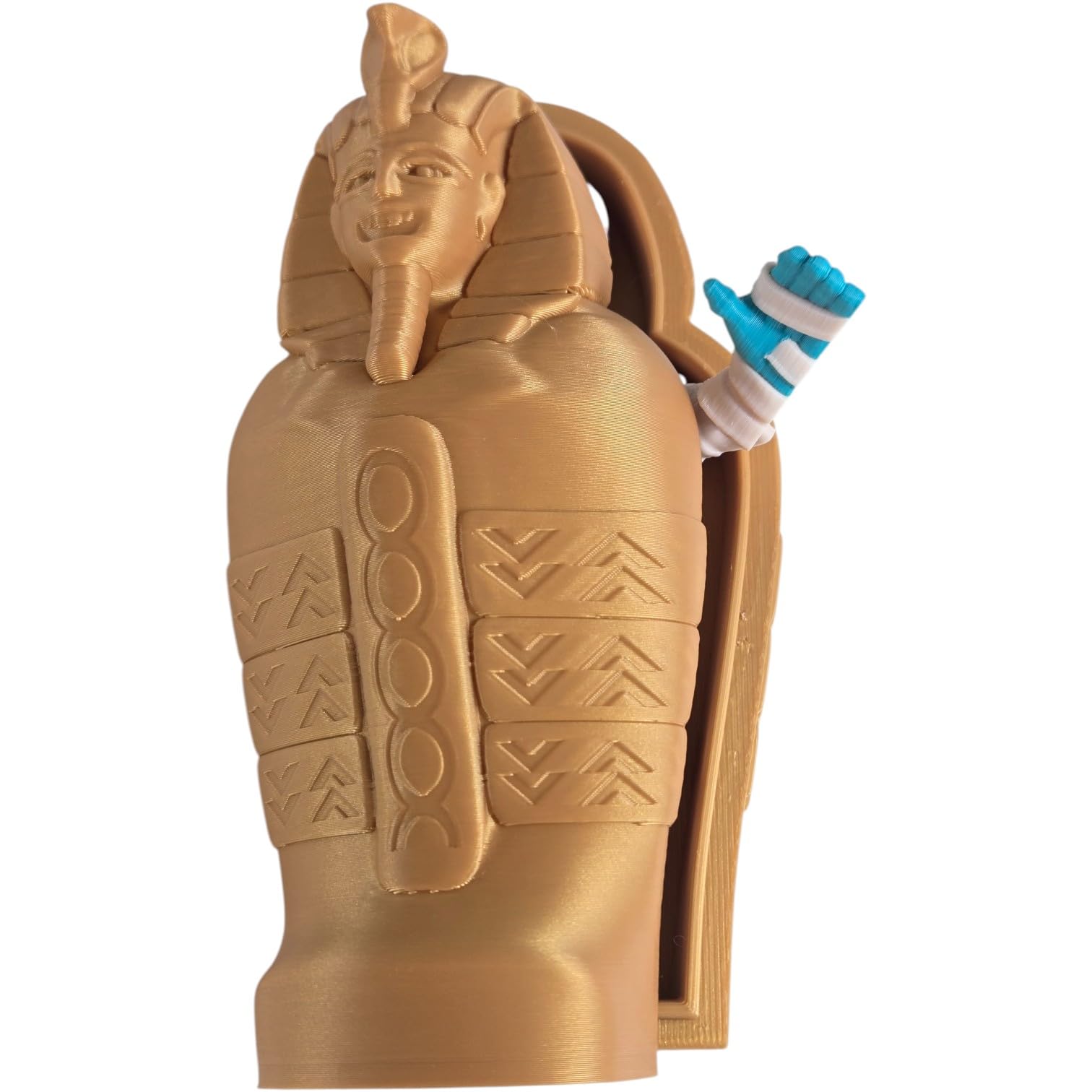 The Articulated Mummy & Sarcophagus Figurine – Ancient Egyptian Desk Fidget for Teens & Adults – Halloween Decor Collectible Gift – Stress Relief & Collectible is an articulated figurine from 3DCentral — printed as a single piece with fully movable joints. No assembly required. Arms, legs, tails, and other appendages move freely right out of the box, showcasing one of the most impressive capabilities of modern 3D printing technology. Produced on our Quebec-based industrial print farm.
