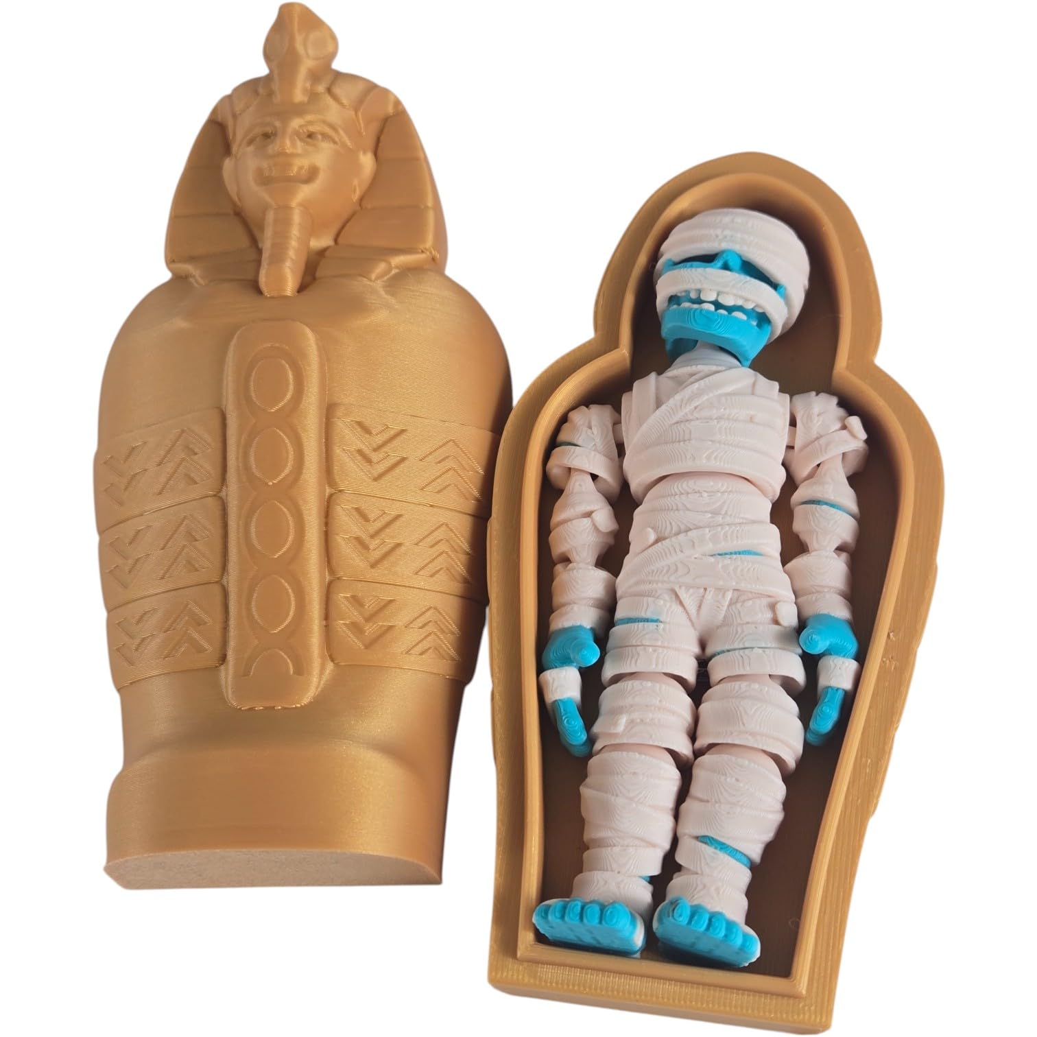 This Articulated Mummy & Sarcophagus Figurine – Ancient Egyptian Desk Fidget for Teens & Adults – Halloween Decor Collectible Gift – Stress Relief & Collectible is part of 3DCentral’s Articulated Figurines collection. We add new designs regularly and retire limited editions periodically to maintain collector value. Display on a shelf, desk, or in a dedicated collection cabinet. The piece is lightweight yet sturdy, suited for any indoor display setting. Multi-pack bundles are available for building complete themed displays.