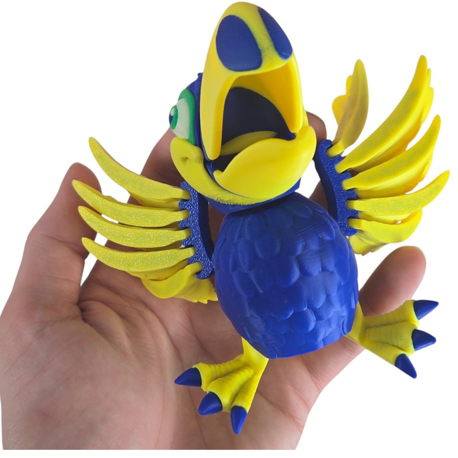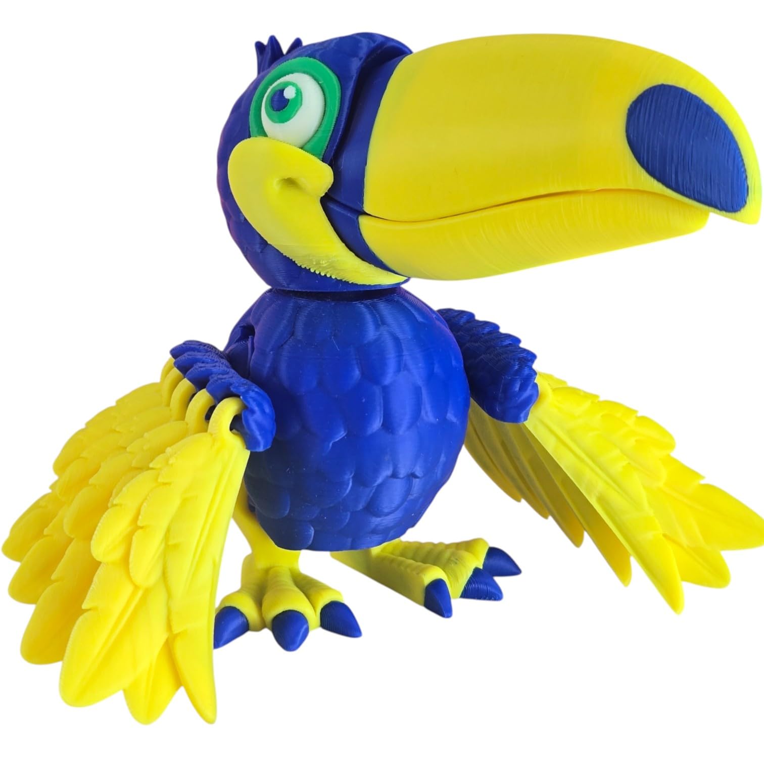 Experience the Articulated Toucan Bird Figurine – Tropical Desk Fidget for Teens & Adults – Stress Relief & Collectible — a print-in-place articulated collectible from our Quebec print farm. Every joint is functional from the moment you open the package, with no glue, screws, or assembly needed. This engineering marvel is produced in premium PLA filament with settings calibrated for optimal joint movement and body rigidity.