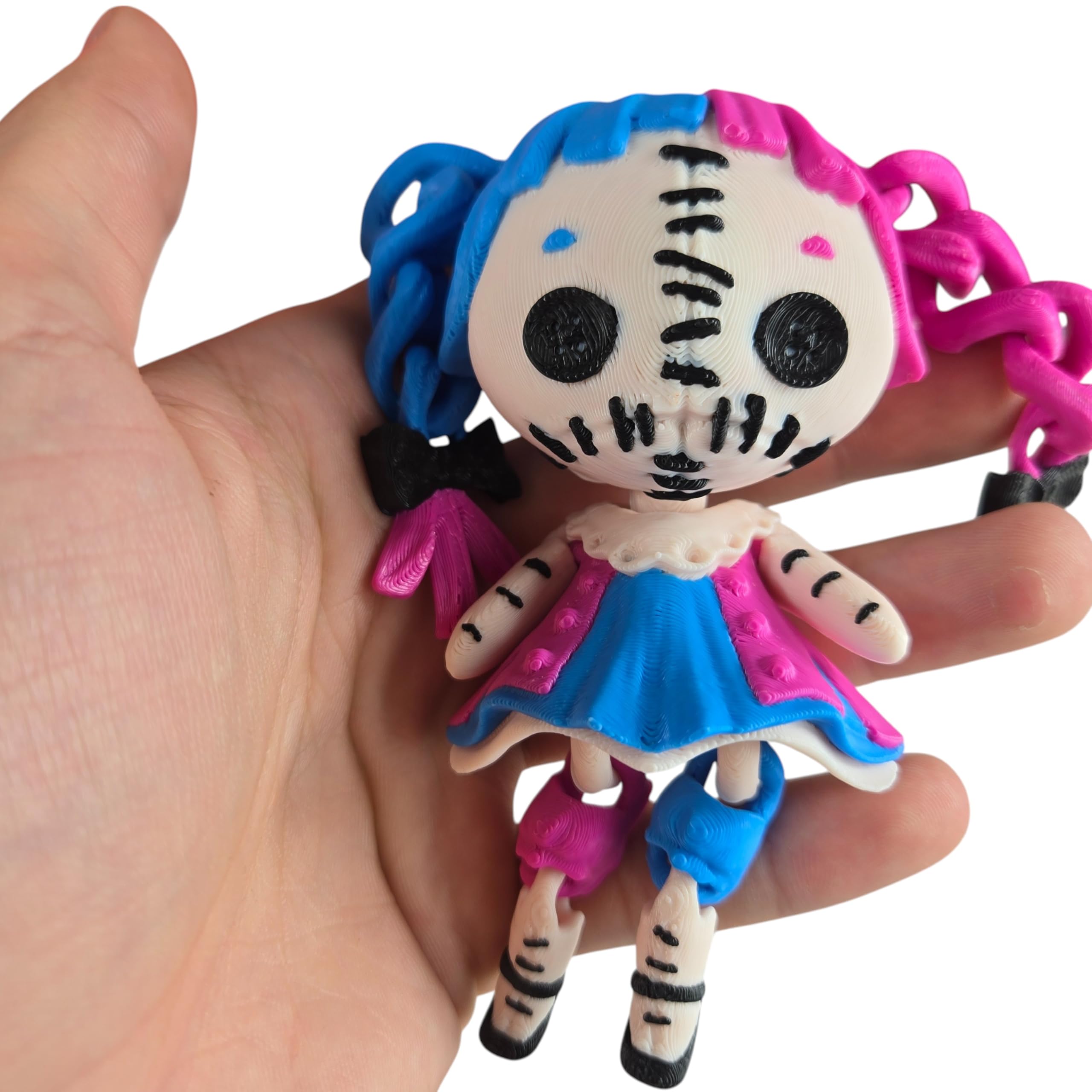 This Articulated Twisty Creepy Doll Figurine – Horror-Inspired Button-Eyed Display Figure with Twisted Braids, Gothic Decor for Desk or Shelf is part of 3DCentral’s Articulated Figurines collection. We add new designs regularly and retire limited editions periodically to maintain collector value. Display on a shelf, desk, or in a dedicated collection cabinet. The piece is lightweight yet sturdy, suited for any indoor display setting. Multi-pack bundles are available for building complete themed displays.