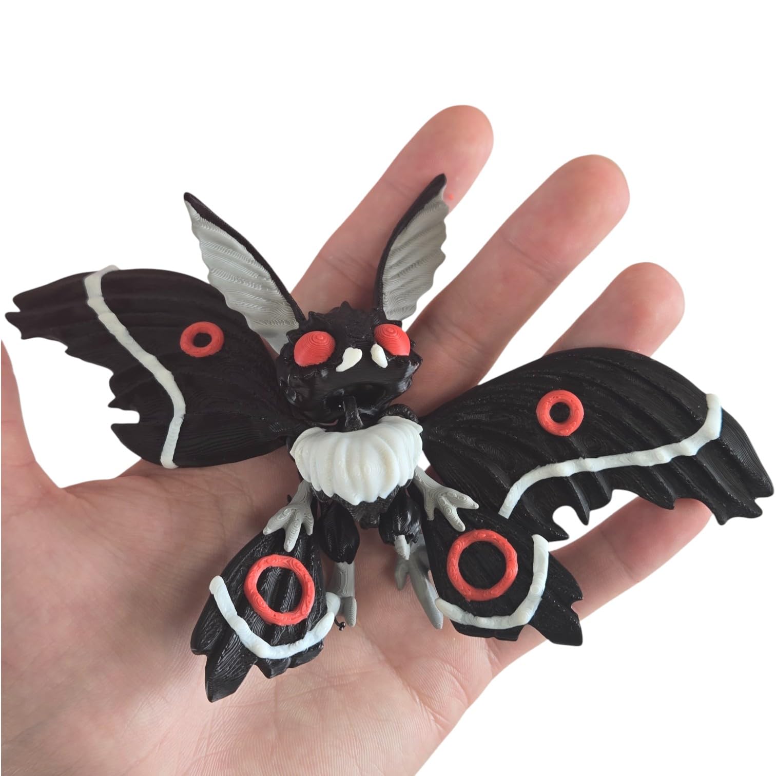 The Articulated Twisty Mothman Figurine – Gothic Cryptid Desk Fidget for Teens & Adults – Stress Relief & Collectible – Action Figure Desk Toy West Virginia Urban Legend is an articulated figurine from 3DCentral — printed as a single piece with fully movable joints. No assembly required. Arms, legs, tails, and other appendages move freely right out of the box, showcasing one of the most impressive capabilities of modern 3D printing technology. Produced on our Quebec-based industrial print farm.