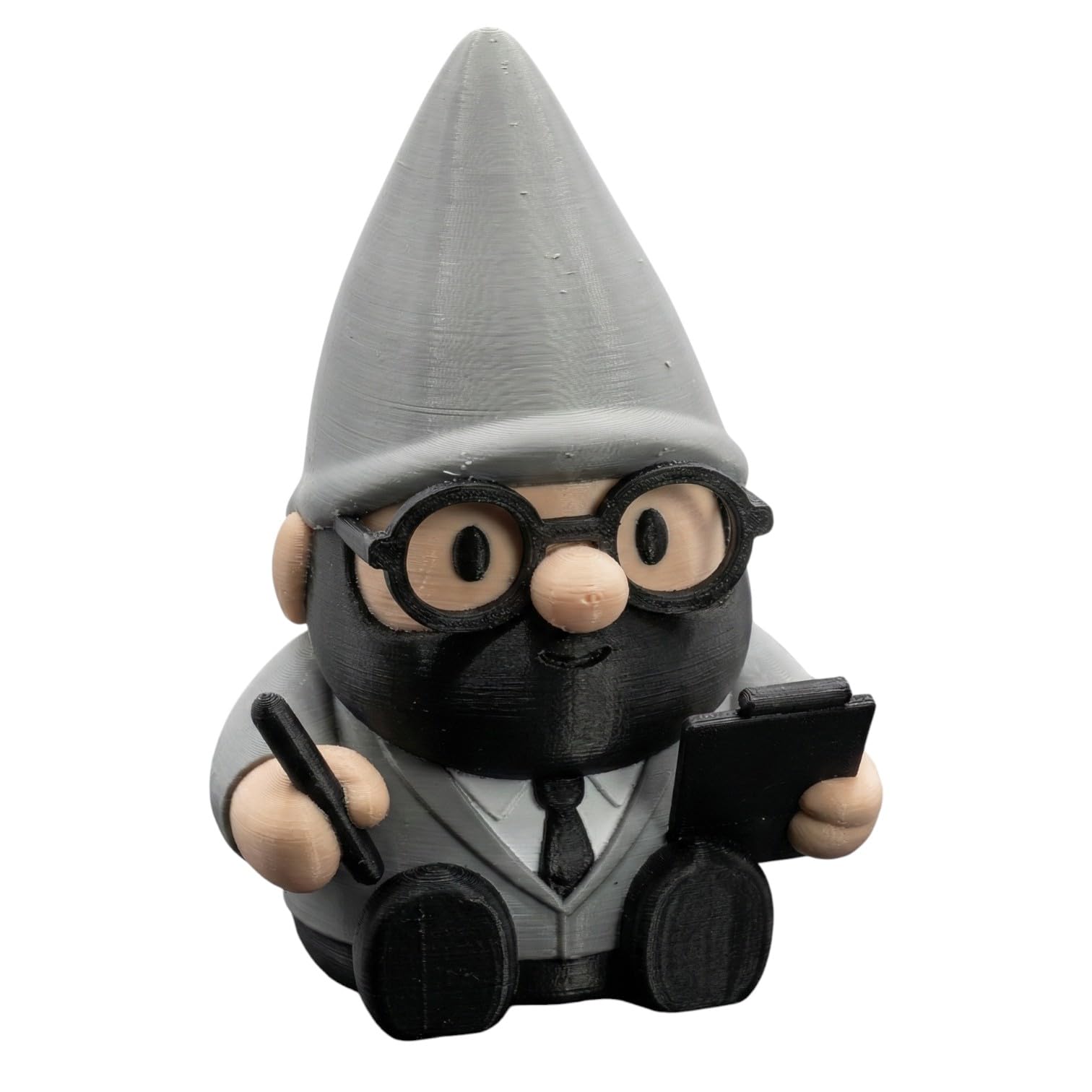 The Auditor Gnome Figurine – Funny Office Desk Decoration for Accountants, CPAS & Finance Lovers – Nerdy Bearded Gnome with Glasses, Pen & Clipboard captures the warmth and whimsy that gnome figurines are known for. 3D printed on our industrial print farm in Quebec, this piece benefits from precision-tuned print parameters that bring out every sculptural detail. Premium PLA ensures colors stay true for years of indoor display.