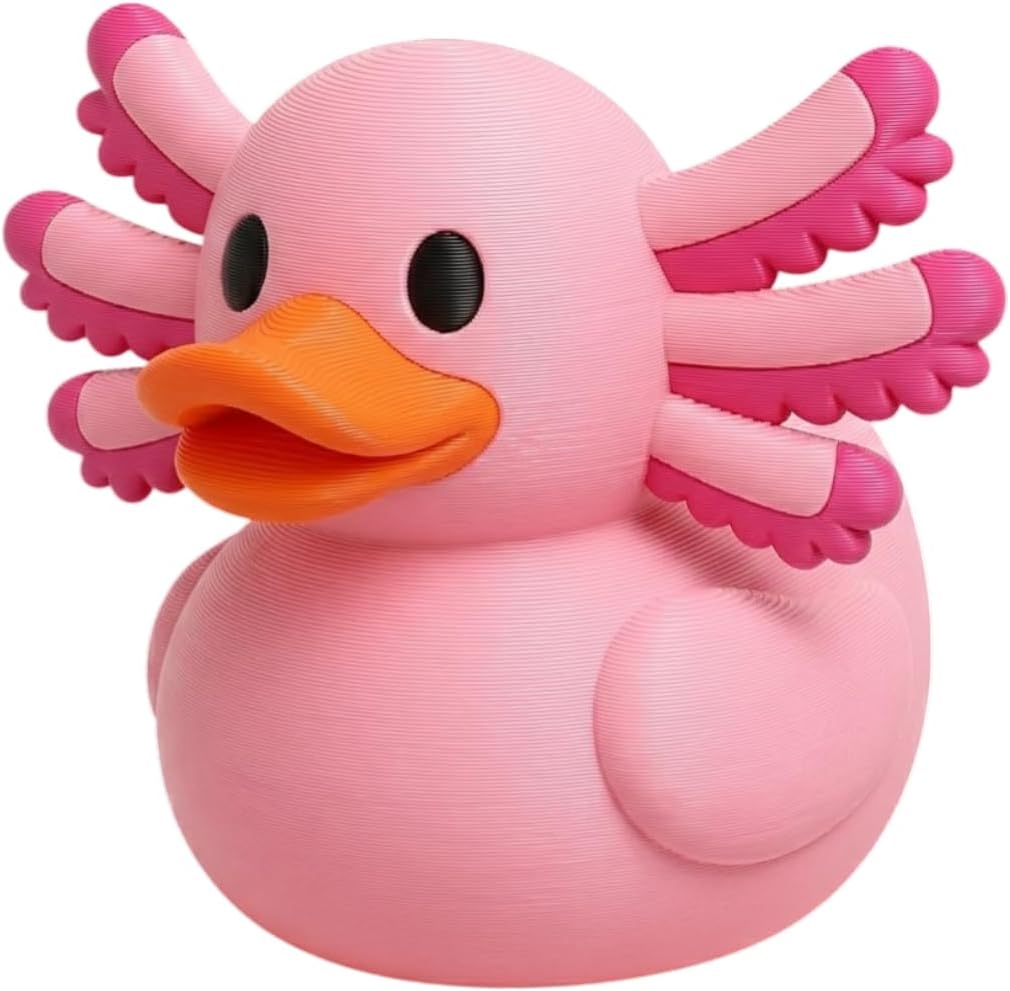 The Axolotl Duck Collectible Figurine – Unique Desk Decor for Collectors – Gift for Adults is a decorative 3D printed collectible from 3DCentral’s extensive duck collection. Printed at our Quebec-based industrial print farm, this piece captures the playful spirit of rubber duck culture with modern additive manufacturing precision. Premium PLA filament ensures vibrant colors and a smooth, display-ready finish straight out of the box.