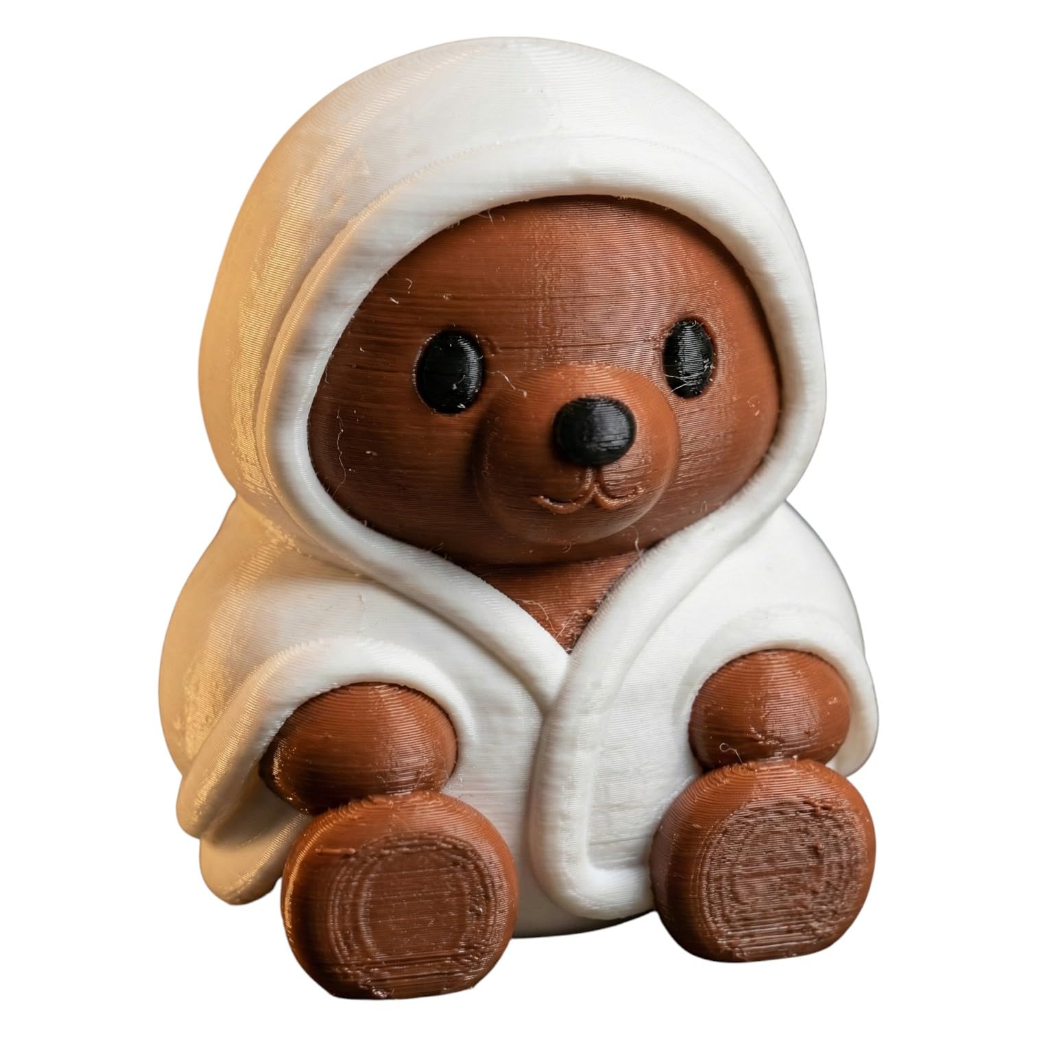 This Bath Towel Teddy Bear Cub Figurine – Cute Hooded Bear Collectible for Desk, Shelf or Gift – Cozy Aesthetic Animal Decor for Adults & Teens brings warmth to any display with its charming teddy bear design. Produced on 3DCentral’s industrial print farm in Quebec, the piece is printed in premium PLA filament with settings optimized for capturing the soft textures and cozy proportions that make teddy bear figurines beloved collectibles.