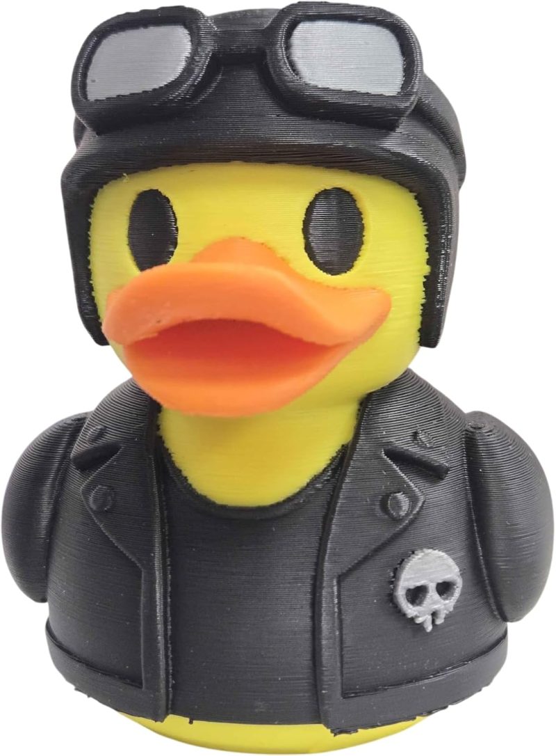 The Biker Duck Figurine – Motorcycle Duck Decor with Leather Jacket & Helmet – Funny Collectible Rubber Duck Display for Desk or Shelf – Unique Gift for Riders & Biker Fans is a decorative 3D printed collectible from 3DCentral’s extensive duck collection. Printed at our Quebec-based industrial print farm, this piece captures the playful spirit of rubber duck culture with modern additive manufacturing precision. Premium PLA filament ensures vibrant colors and a smooth, display-ready finish straight out of the box.