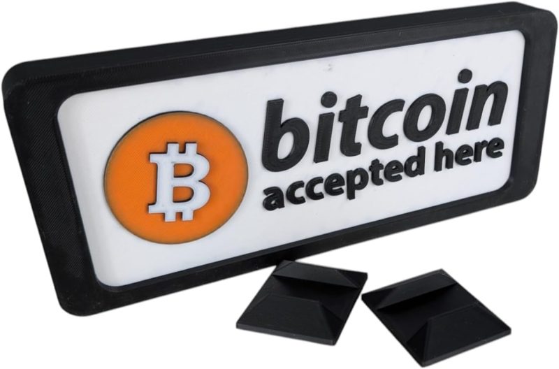 The Bitcoin Accepted Here Sign – Display for Storefronts, Offices & Home – Bitcoin Logo – Modern Bitcoin Art for Retail, Tech Spaces & Investor Gifts is a collectible figurine from 3DCentral’s catalog, 3D printed on our industrial print farm in Quebec, Canada. Each piece is produced in premium PLA filament for vibrant colors, smooth surfaces, and fine detail reproduction. A handcrafted collectible designed for display and appreciation.