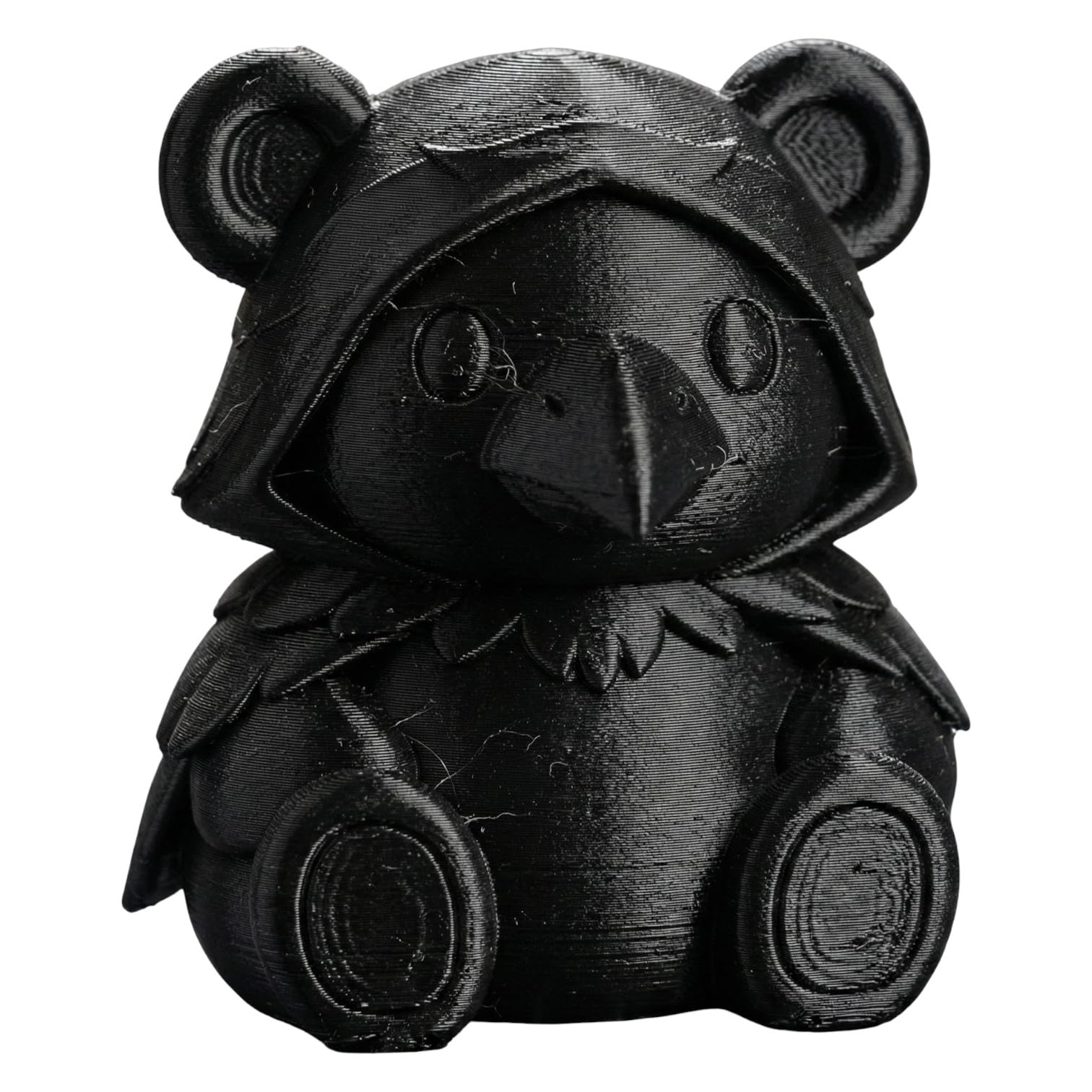 Black Raven Teddy Bear Figurine. Cuddly printed companion for any shelf. 3D printed collectible made in Quebec, Canada. Premium PLA, ready to display.