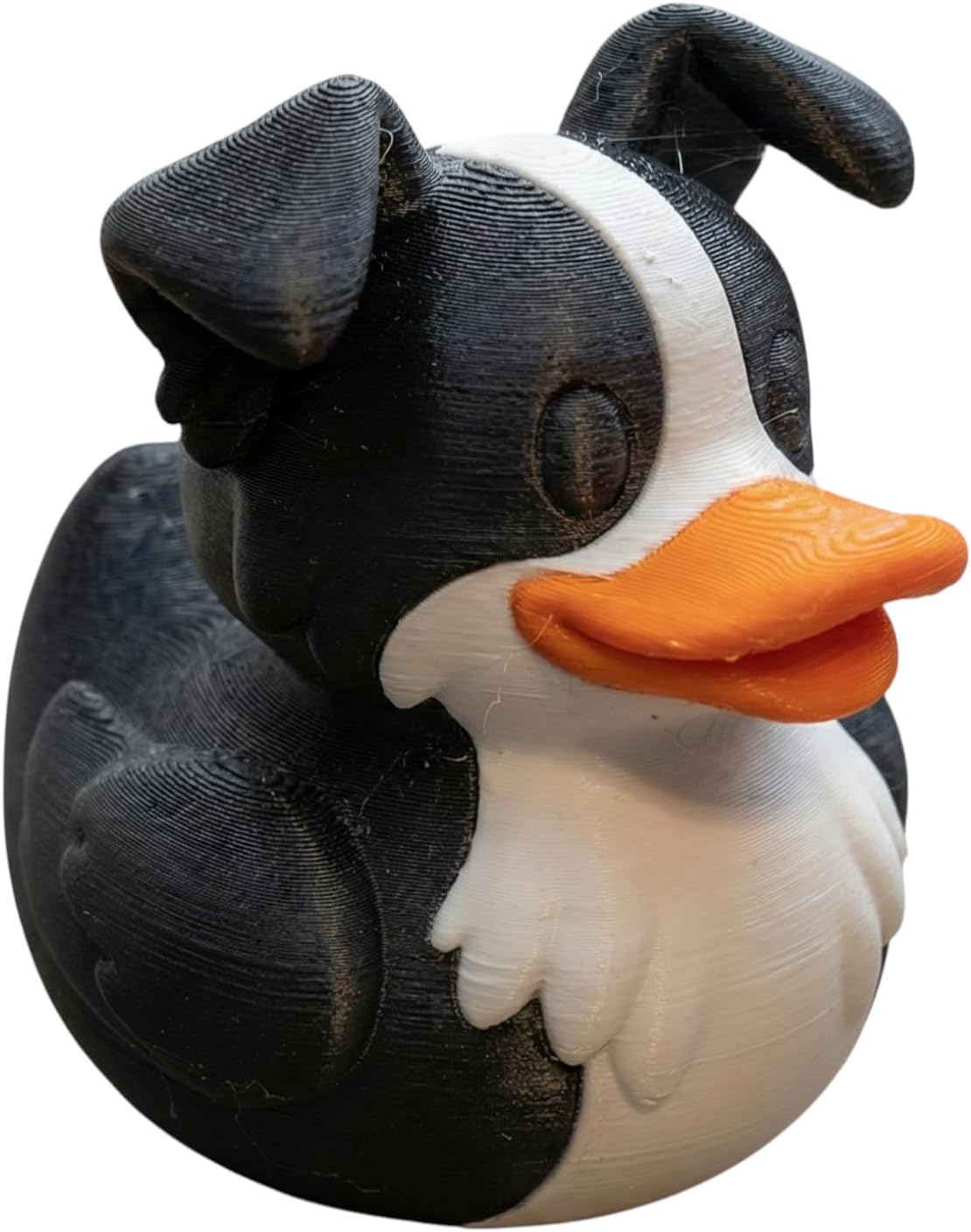 The Border Collie Duck Figurine – Unique Dog-Themed Rubber Duck Decor, Collectible Farm Animal Mashup for Display, Shelf, or Desk brings character and charm to any display. 3D printed on our industrial print farm in Quebec, this collectible duck is produced in premium PLA filament with optimized print settings for decorative objects. Each piece is inspected before shipping to ensure it meets our standards for color, surface finish, and structural quality.