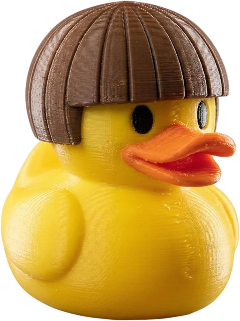 Meet the Bowl Cut Duck Figurine – Funny Retro Rubber Duck Collectible with Brown Hair Helmet – Quirky Gift for Adults, Desk Décor or Display Shelf Accent — a handcrafted addition to our Ducks catalog. Produced on demand at our Laval, Quebec print farm, each unit is printed in premium PLA with attention to surface quality and color detail. Our duck collection celebrates creativity and collectibility, with designs ranging from classic to wildly imaginative.