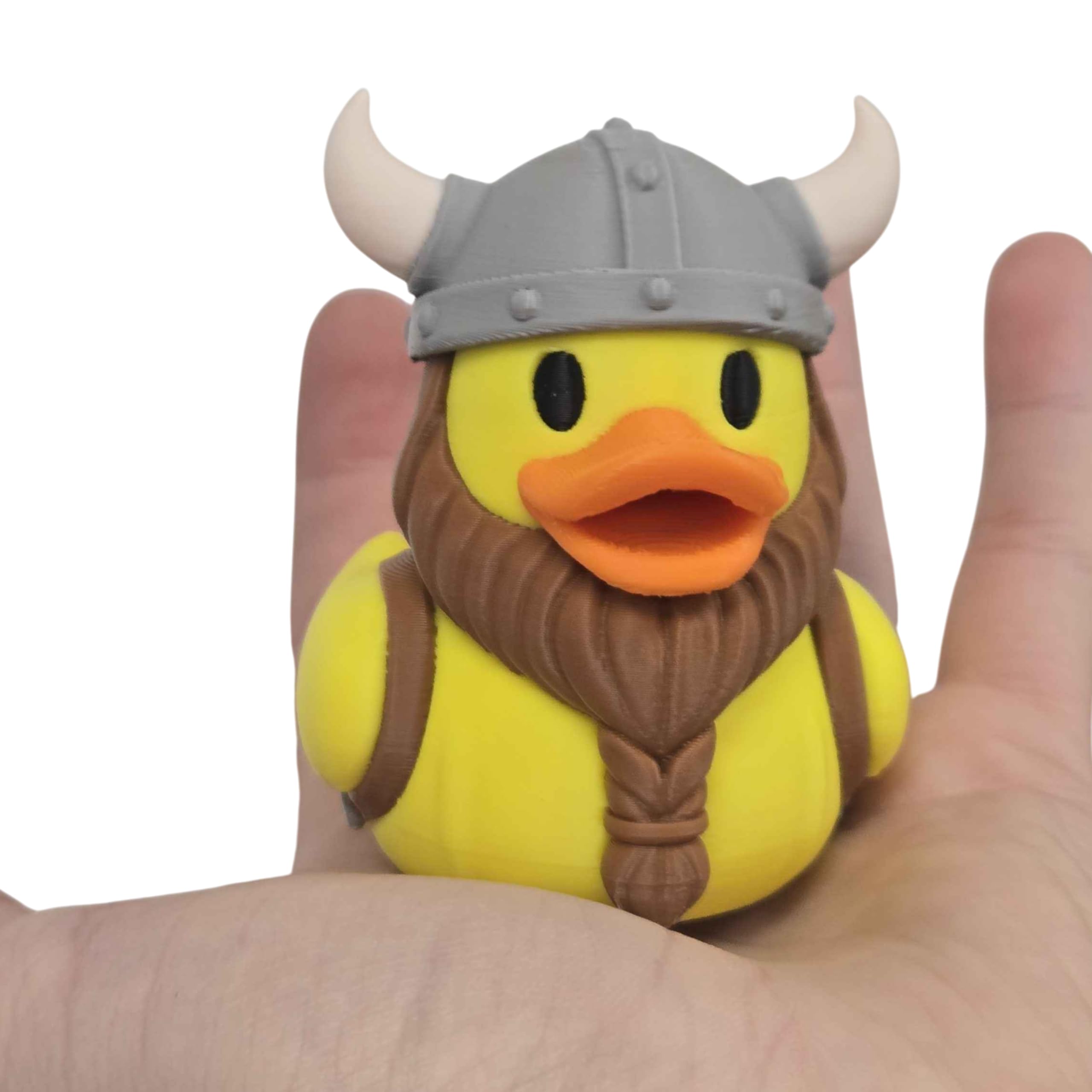 The Braided Beard Viking Duck Figurine – Nordic Rubber Duck with & Horned Helmet Viking Decor, Funny Collectible Display for Desk, Bath, or Shelf is a decorative 3D printed collectible from 3DCentral’s extensive duck collection. Printed at our Quebec-based industrial print farm, this piece captures the playful spirit of rubber duck culture with modern additive manufacturing precision. Premium PLA filament ensures vibrant colors and a smooth, display-ready finish straight out of the box.