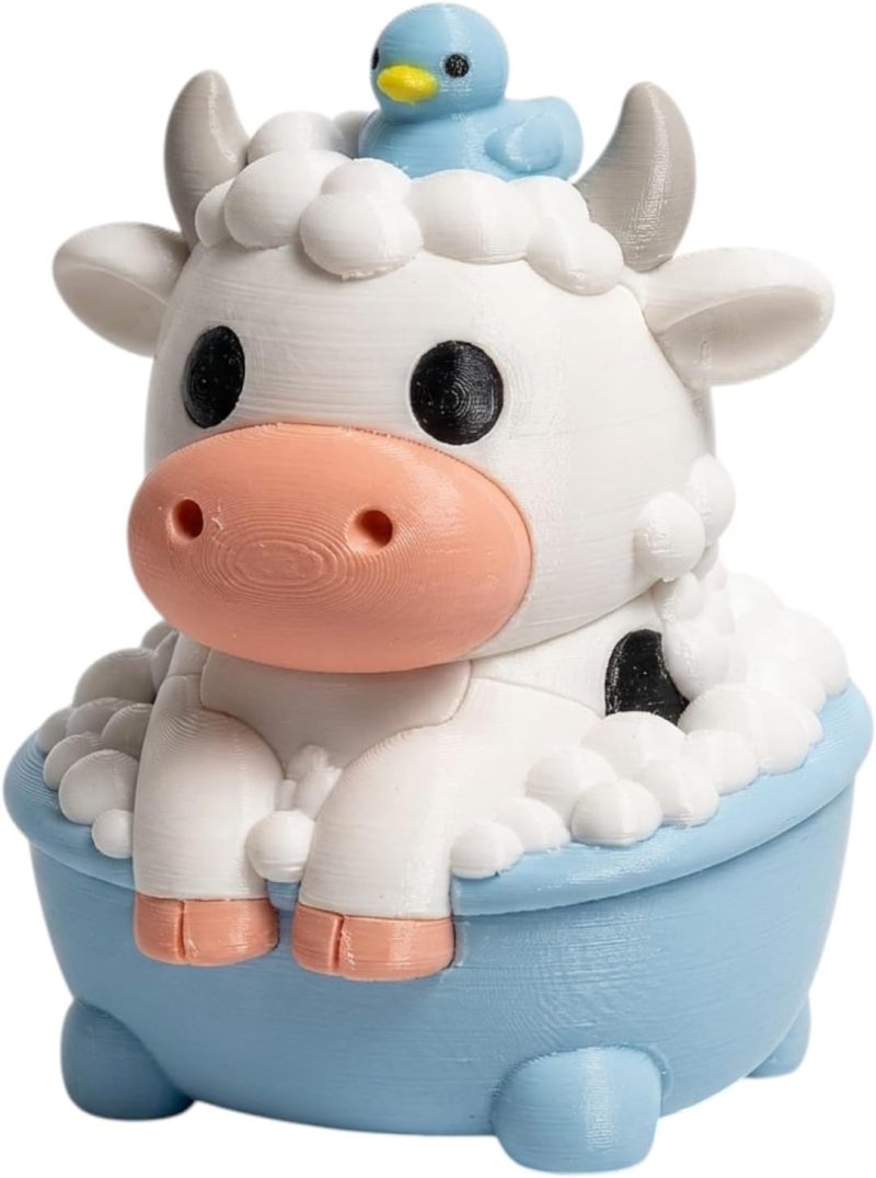 This Bubble Bath Cow Collectible Figurine – Unique Desk Decor for Adults is a unique addition to 3DCentral’s collectible figurine catalog. Produced at our Laval, Quebec facility using premium PLA filament, each piece showcases the quality and creativity that our print farm is known for. Designed for collectors, gift-givers, and anyone who appreciates handcrafted objects.