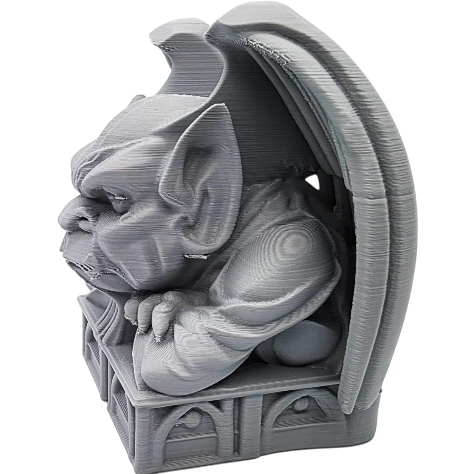 The Bulk Gargoyle Figurine – Gothic Fantasy Statue for Desk, Shelf, or Tabletop Display – Mythical Creature Collectible for Fans & Gamers is part of 3DCentral’s growing catalog of 3D printed collectibles. Produced on our industrial print farm in Laval, Quebec, this piece is printed in premium PLA filament with settings optimized for decorative objects. Every unit is inspected for surface quality and color accuracy before shipping.