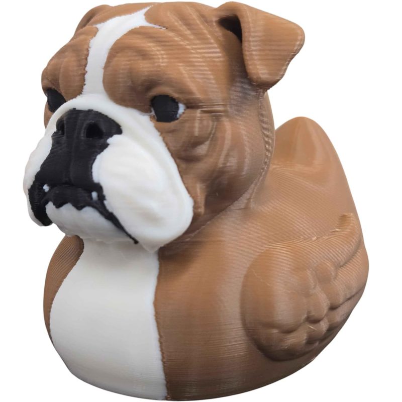 The Bulldog Duck Figurine – Hilarious Rubber Duck Bulldog Hybrid for Dog Lovers, Unique Gift or Shelf Decor Accent is a decorative 3D printed collectible from 3DCentral’s extensive duck collection. Printed at our Quebec-based industrial print farm, this piece captures the playful spirit of rubber duck culture with modern additive manufacturing precision. Premium PLA filament ensures vibrant colors and a smooth, display-ready finish straight out of the box.
