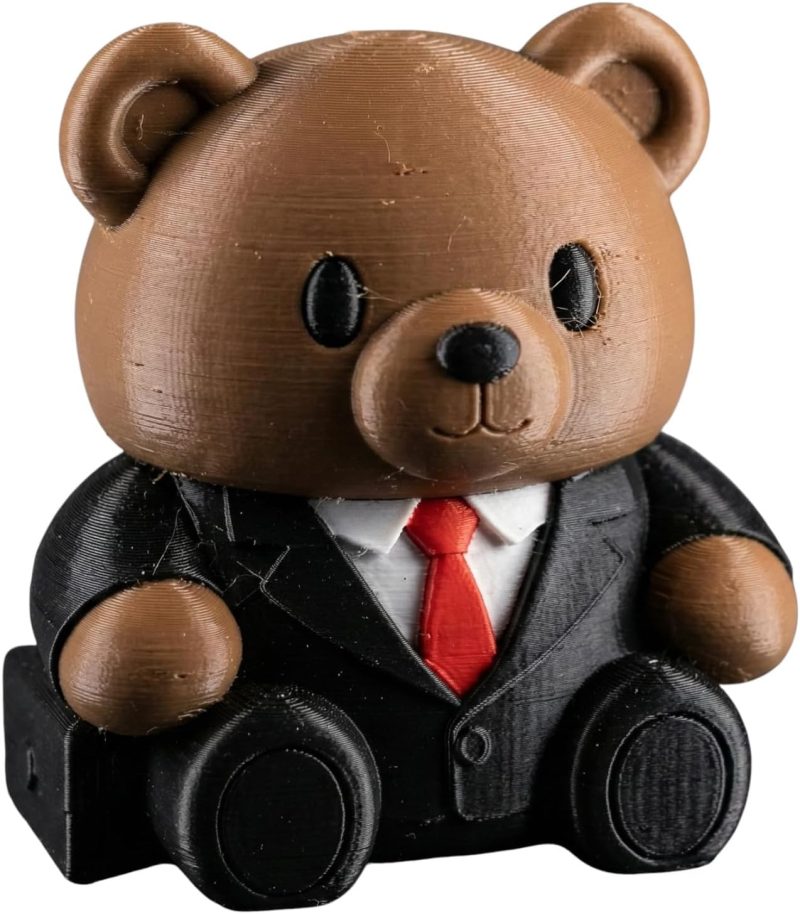 The Business Teddy Bear Cub Figurine – Cute Office Desk Decor, Collectible Bear in Suit for Adults & Teens, Funny Executive Animal Gift is a decorative teddy bear figurine from 3DCentral’s collectible series. 3D printed on our Quebec-based print farm using premium PLA, this piece captures the timeless charm of stuffed bears through modern manufacturing — textured surfaces mimic stitching and fur patterns with remarkable fidelity.