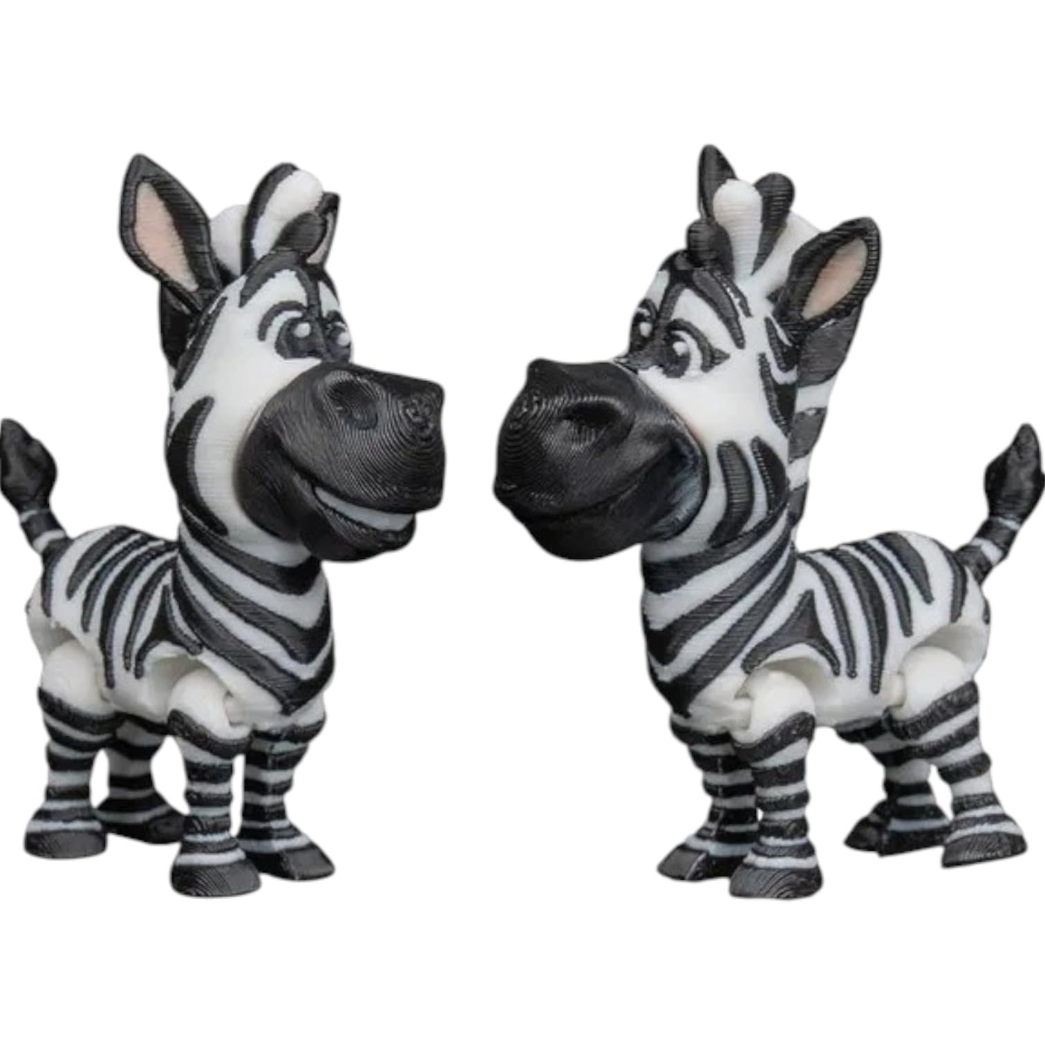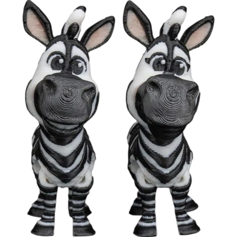 This Cartoon Zebra Duo Figurines – Articulated Poseable Fidget Statues for Desk or Shelf Display – Cute Animal Collectible Gift for Teens & Adults features print-in-place articulation — multiple moving joints produced in a single, uninterrupted print. Manufactured at our Laval, Quebec facility, each articulated piece balances flexibility at the joints with structural strength in the body, creating a poseable collectible that holds its position for display.