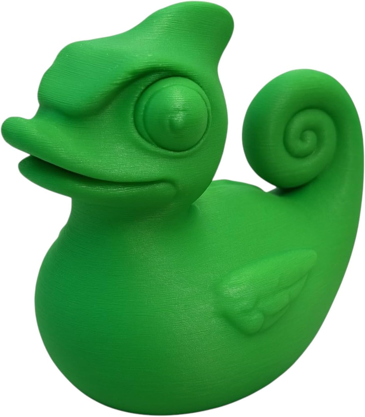 Meet the Chameleon Duck Figurine – Fantasy Hybrid Reptile Collectible, Curved Tail Dragon-Duck Fusion Sculpture, Quirky 3D Art for Display or Gifting — a handcrafted addition to our Ducks catalog. Produced on demand at our Laval, Quebec print farm, each unit is printed in premium PLA with attention to surface quality and color detail. Our duck collection celebrates creativity and collectibility, with designs ranging from classic to wildly imaginative.