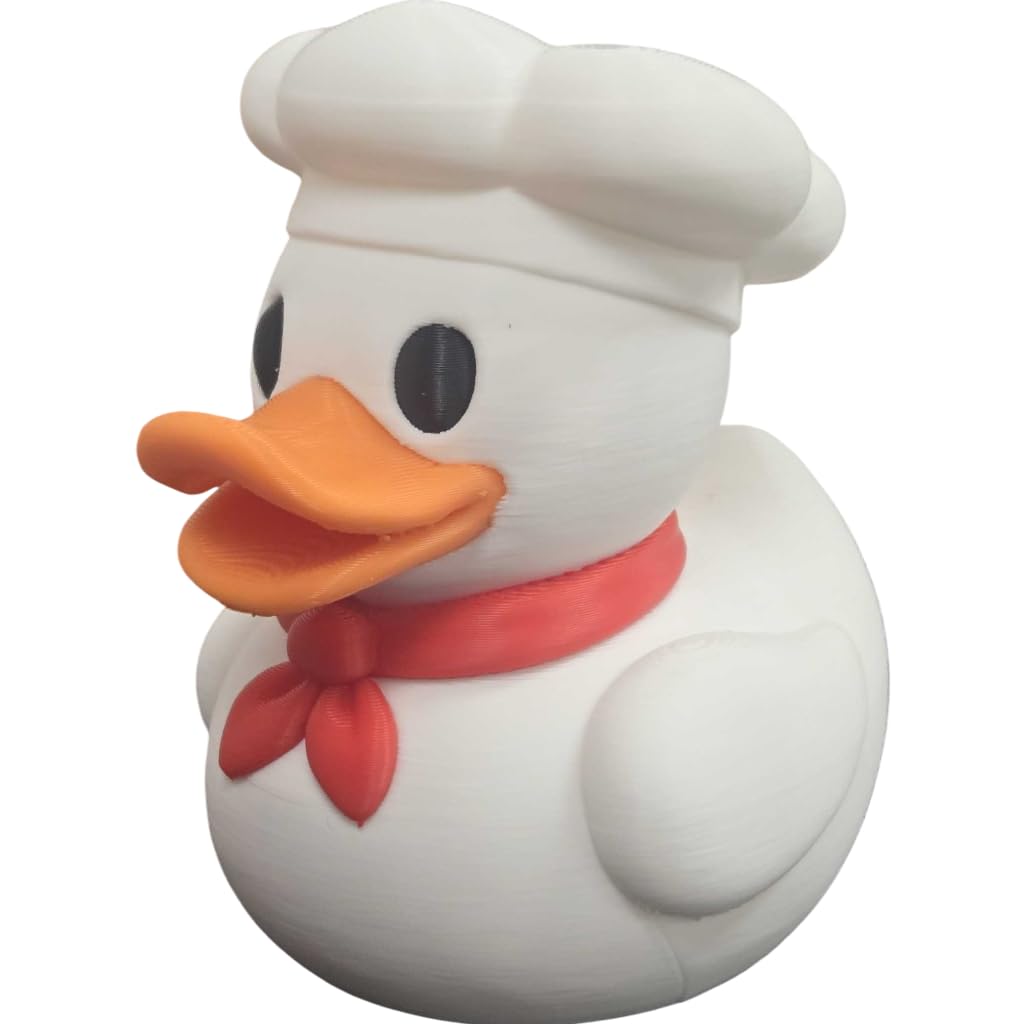 The Chef Duck Figurine with Cute Hat & Scarf – Adorable Kitchen Decor Accent or Collectible Gift for Duck Lovers is a decorative 3D printed collectible from 3DCentral’s extensive duck collection. Printed at our Quebec-based industrial print farm, this piece captures the playful spirit of rubber duck culture with modern additive manufacturing precision. Premium PLA filament ensures vibrant colors and a smooth, display-ready finish straight out of the box.