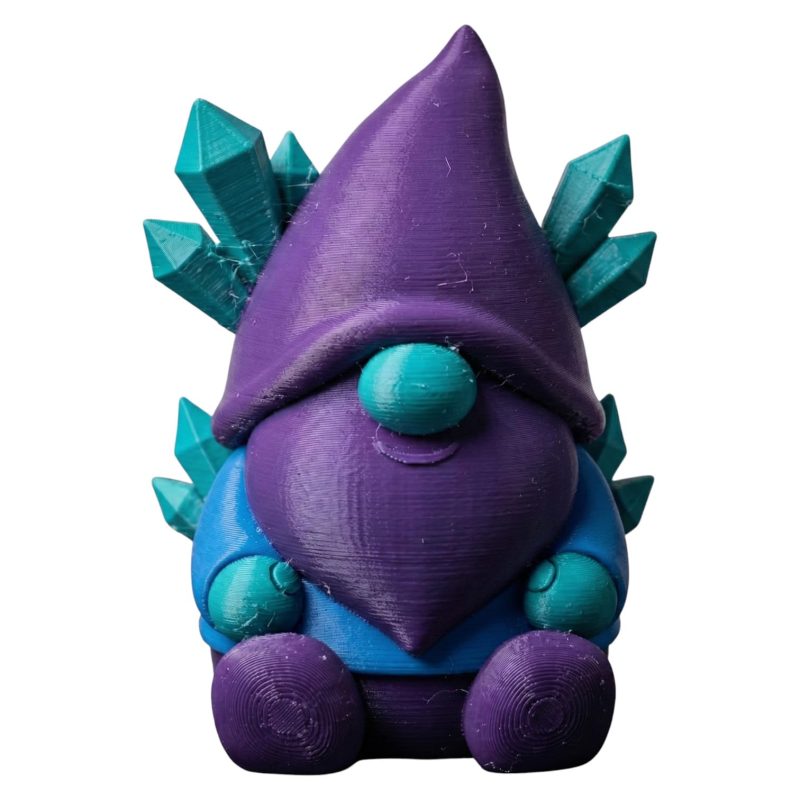 This Crystal Gnome Figurine with Crystal Spikes – Fantasy Desk Decor, Shelf Accent – Vibrant Purple & Teal Statue is a detailed gnome collectible from 3DCentral’s catalog. Produced at our Laval, Quebec facility using premium PLA filament, every gnome features crisp textures — from flowing beards to pointed hats — that showcase the best of 3D printing technology applied to decorative art.