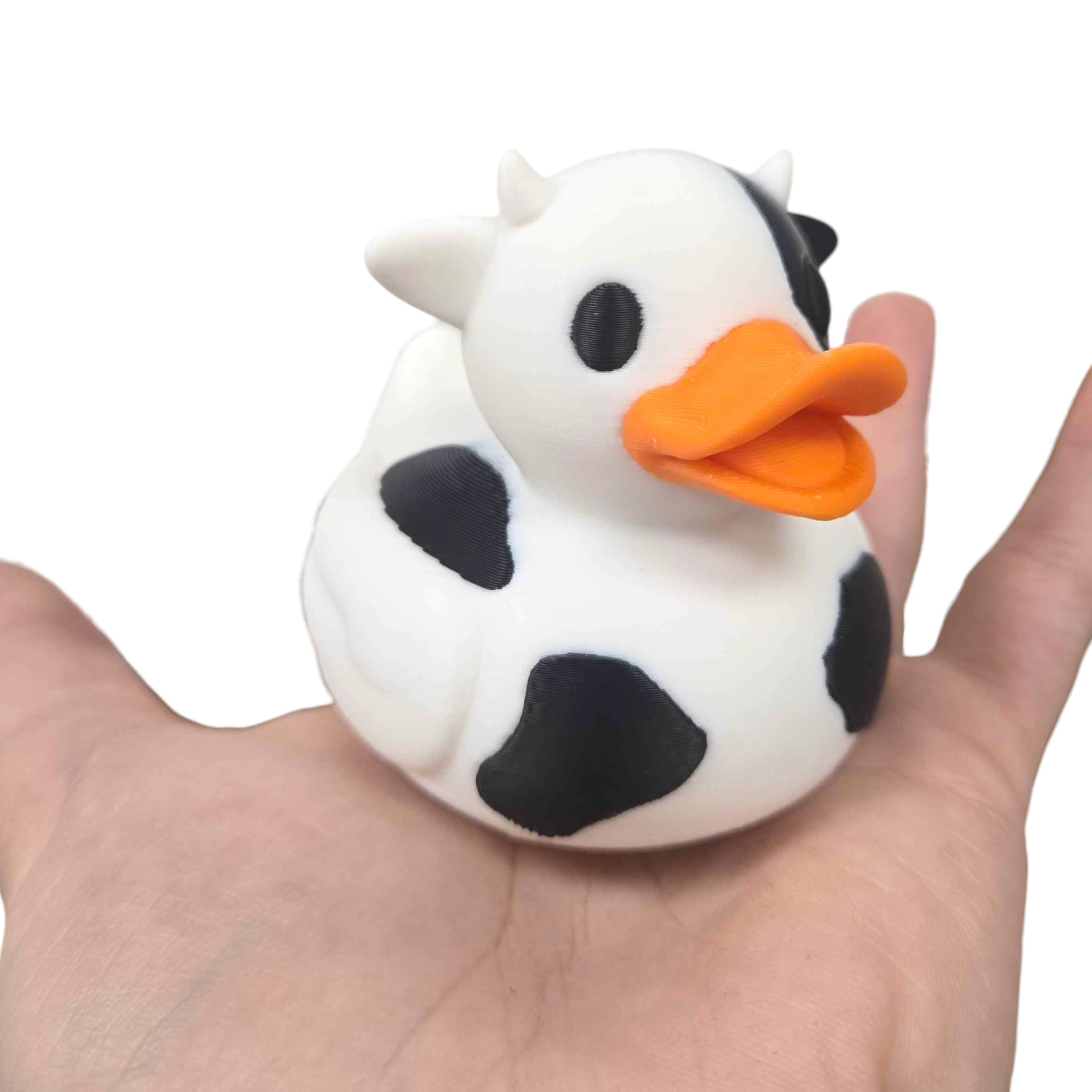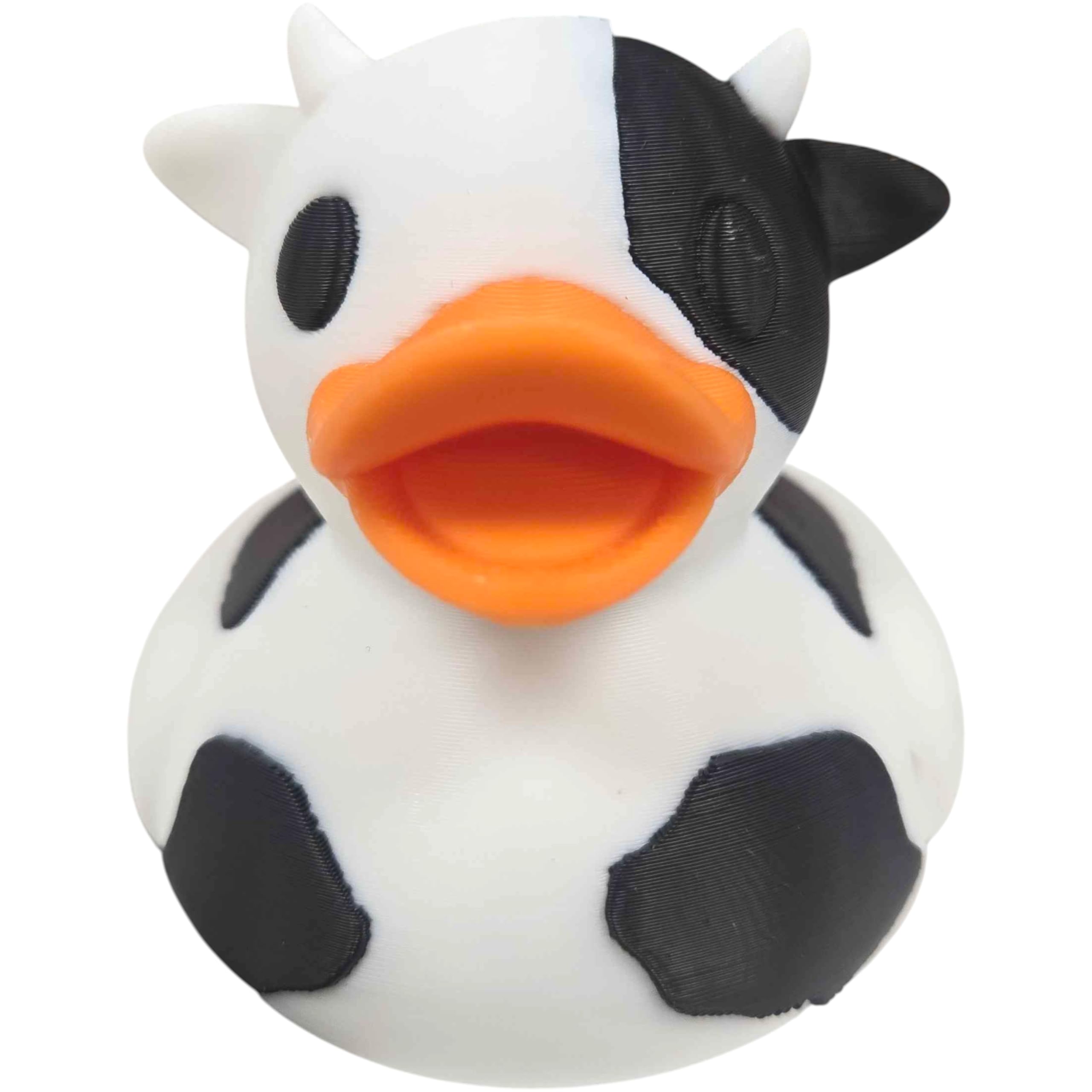 The Dairy Cow Duck Figurine – Duck-Cow Hybrid – Moo-Tastic Collectible in Black & White – Funny Farm Animal Mash-Up Decor Gift for Teens & Adults is a decorative 3D printed collectible from 3DCentral’s extensive duck collection. Printed at our Quebec-based industrial print farm, this piece captures the playful spirit of rubber duck culture with modern additive manufacturing precision. Premium PLA filament ensures vibrant colors and a smooth, display-ready finish straight out of the box.