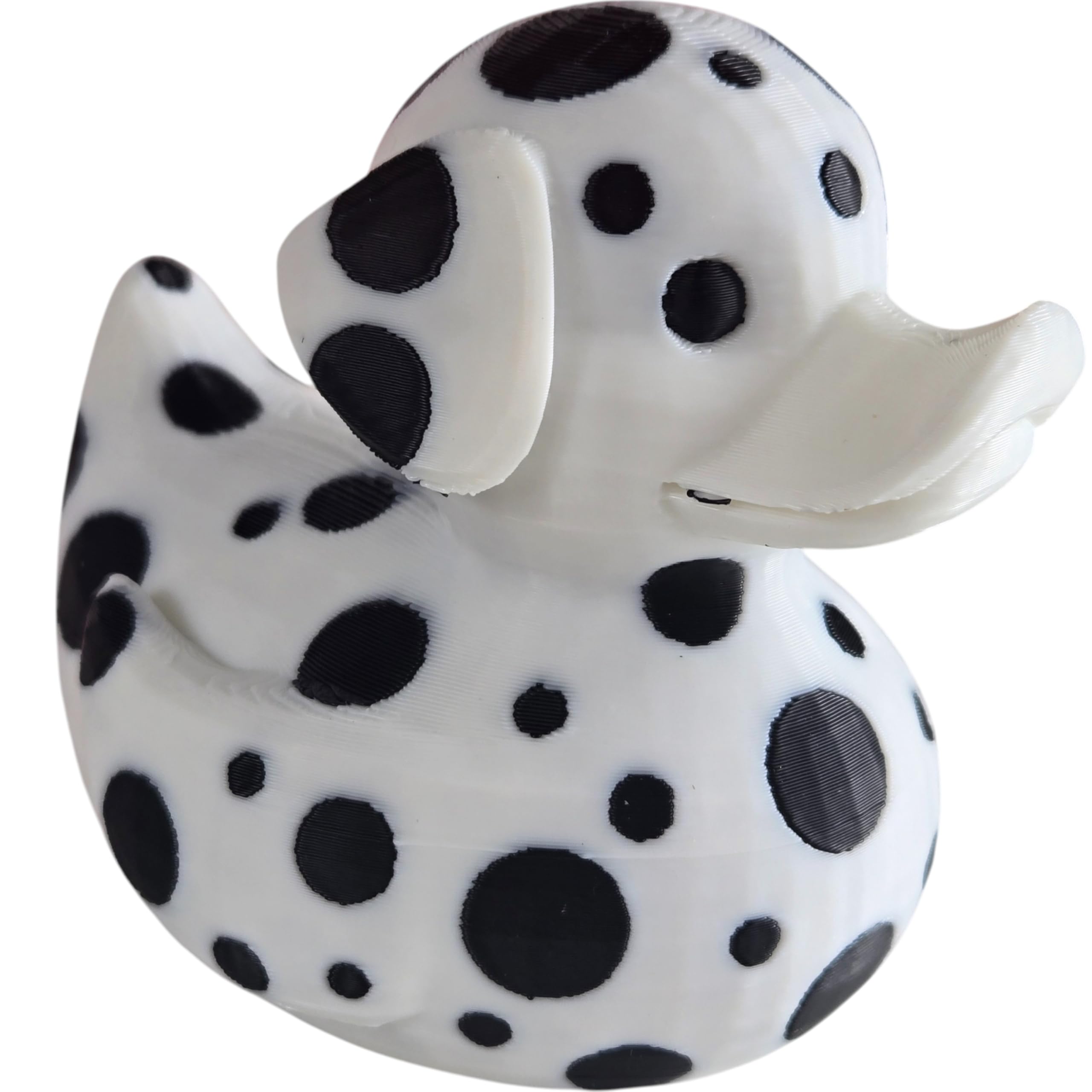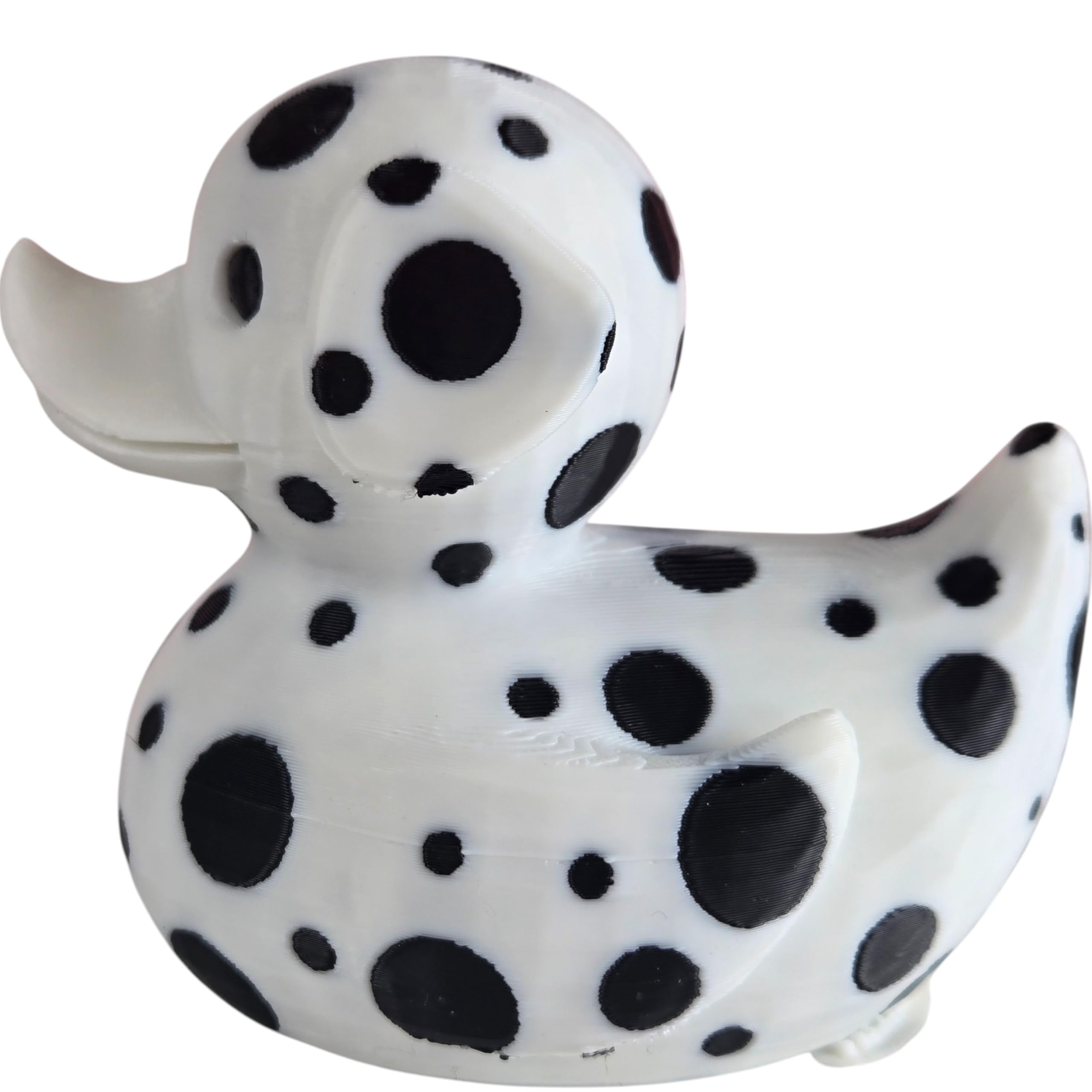 The Dalmatian Duck Figurine – Cute Car Dashboard & Desk Decor – Dog Lover Collectible is a decorative 3D printed collectible from 3DCentral’s extensive duck collection. Printed at our Quebec-based industrial print farm, this piece captures the playful spirit of rubber duck culture with modern additive manufacturing precision. Premium PLA filament ensures vibrant colors and a smooth, display-ready finish straight out of the box.
