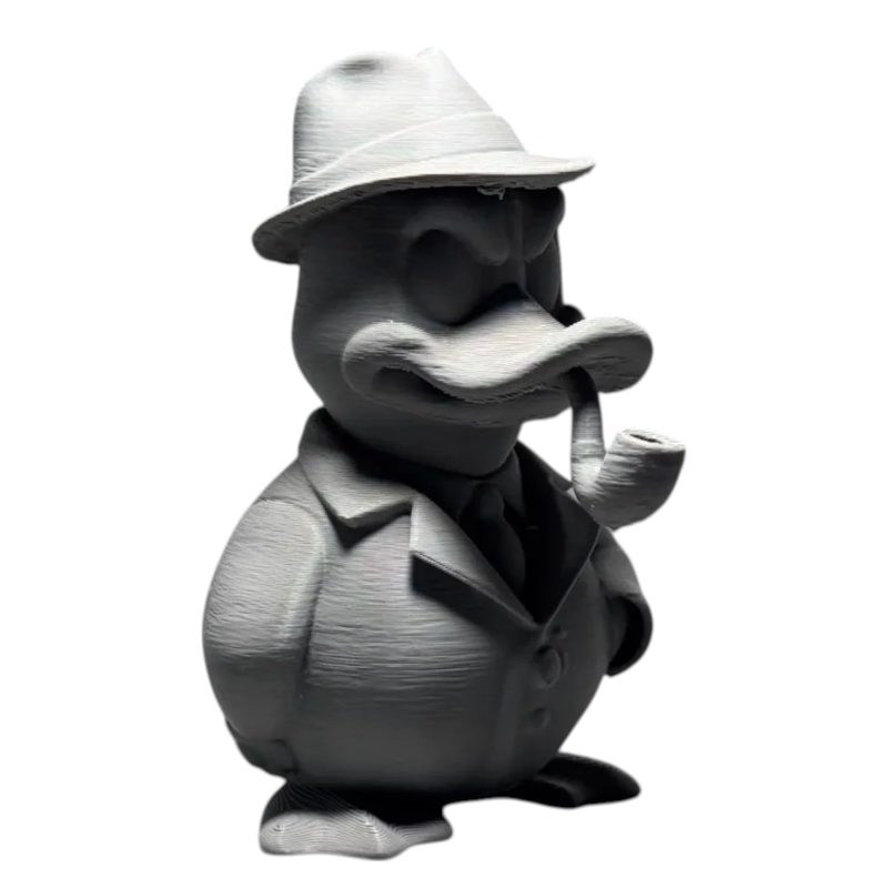 Add the Detective Duck Figurine – Noir Duck Sculpture with Pipe & Fedora Hat, Private Eye Decor for Desk or Shelf to your shelf — a unique 3D printed duck collectible from our Quebec print farm. This piece is part of a 1,000+ design duck catalog, each printed in premium PLA filament for rich color and fine detail. Every duck we produce reflects our commitment to small-batch quality and creative design.