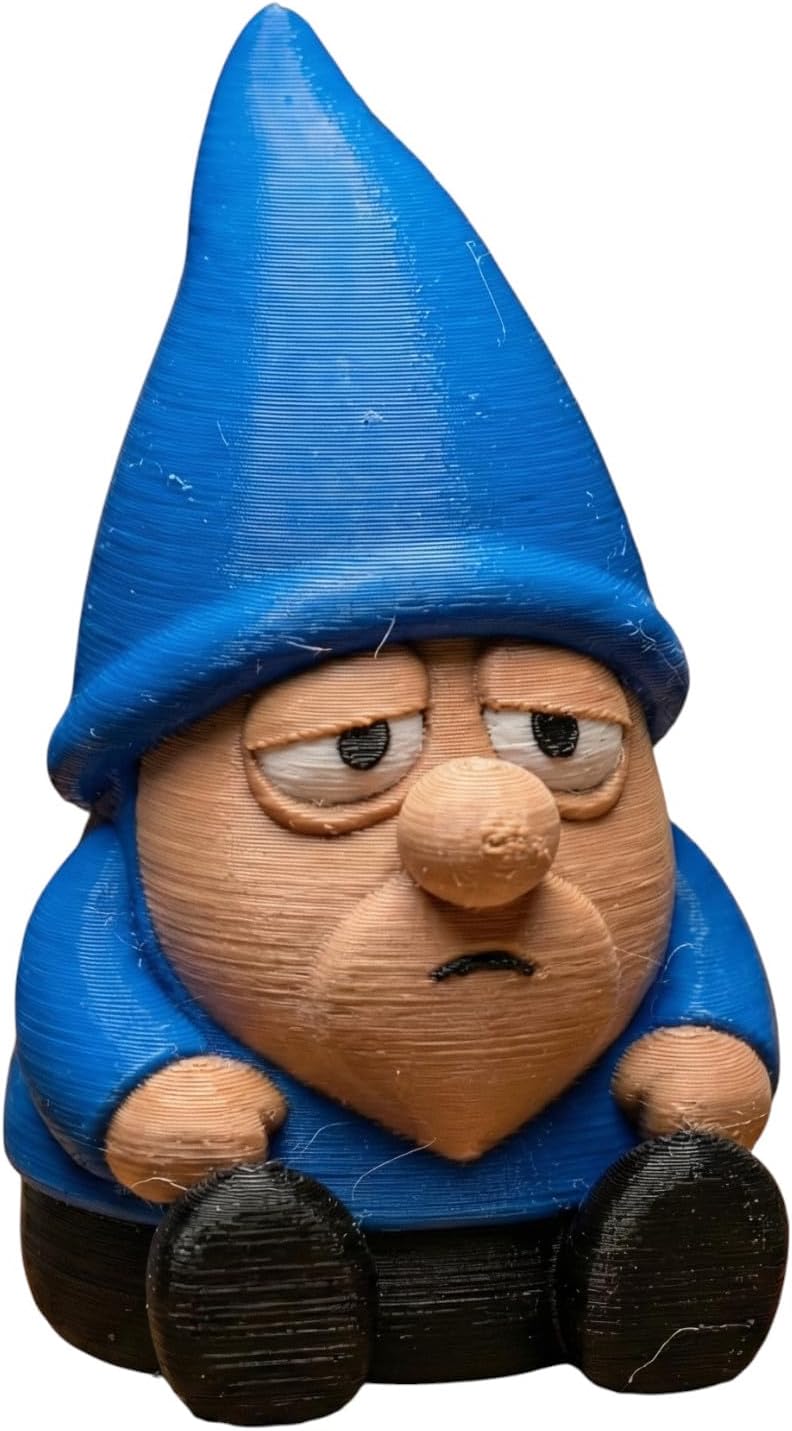 The Didn’t Sleep Gnome Figurine – Funny Sleep-Deprived Garden Gnome Statue for Desk, Shelf or Plant Décor – Collectible Gnome Gift for Adults and Teens captures the warmth and whimsy that gnome figurines are known for. 3D printed on our industrial print farm in Quebec, this piece benefits from precision-tuned print parameters that bring out every sculptural detail. Premium PLA ensures colors stay true for years of indoor display.