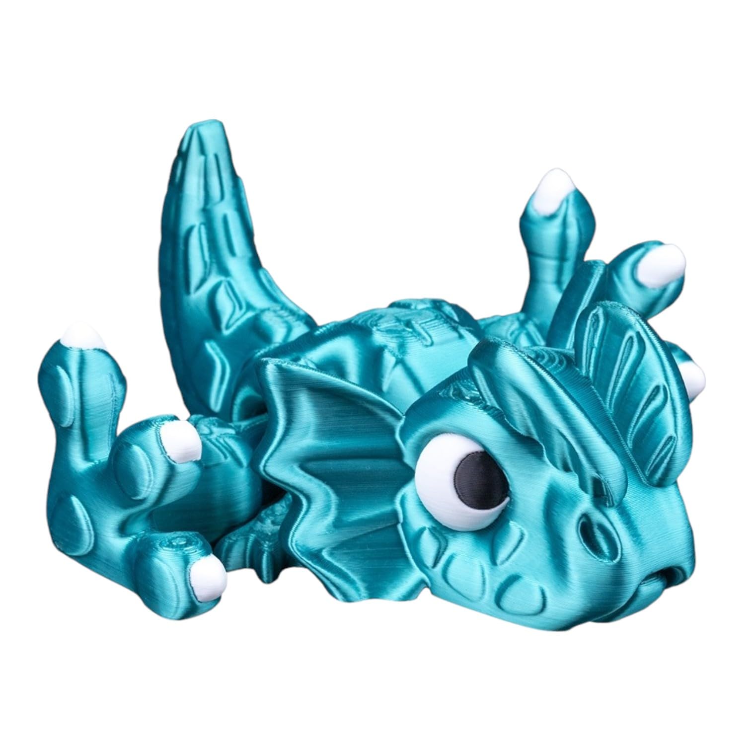 This Dilophosaurus Dinosaur Figurine – Articulated Fidget Desk Pet for Teens & Adults – Aqua Blue Reptile Toy Model, Poseable & Collectible features print-in-place articulation — multiple moving joints produced in a single, uninterrupted print. Manufactured at our Laval, Quebec facility, each articulated piece balances flexibility at the joints with structural strength in the body, creating a poseable collectible that holds its position for display.