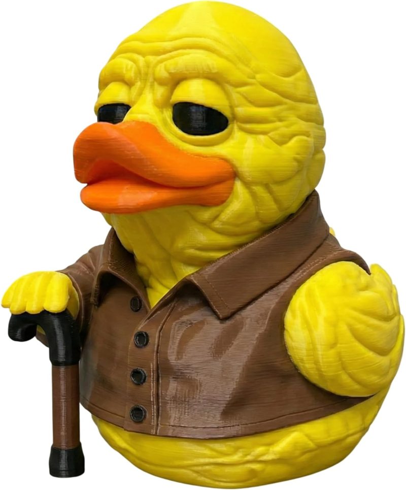 Meet the Elder Duck Figurine with Cane & Wrinkled Detail – Funny Grandpa-Style Rubber Duck Collectible for Display — a handcrafted addition to our Ducks catalog. Produced on demand at our Laval, Quebec print farm, each unit is printed in premium PLA with attention to surface quality and color detail. Our duck collection celebrates creativity and collectibility, with designs ranging from classic to wildly imaginative.