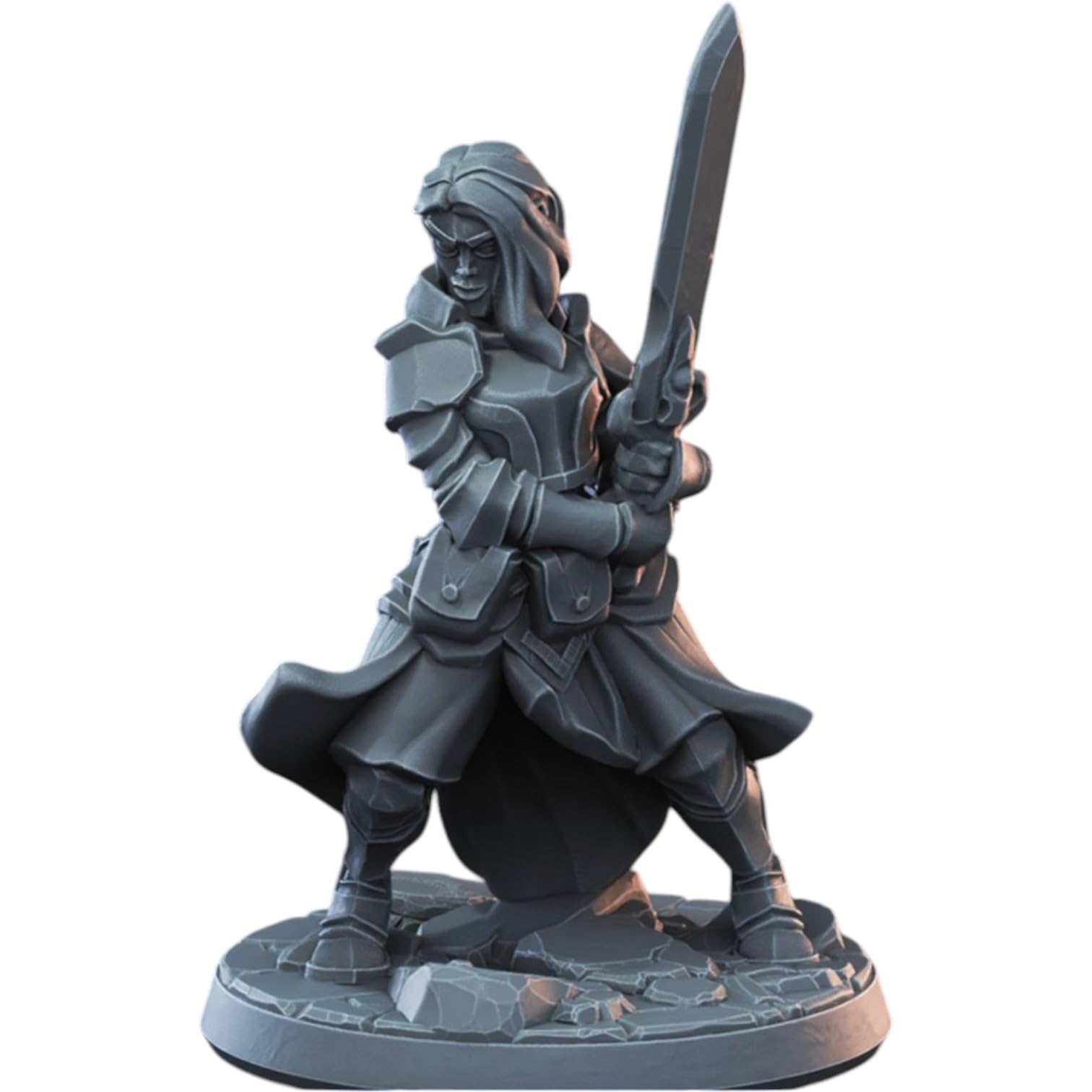 About the Female Knight Miniature with Two-Handed Sword for Tabletop RPG, Wargaming & Display – Armored Fantasy Warrior Figure for Painting & Collectors
