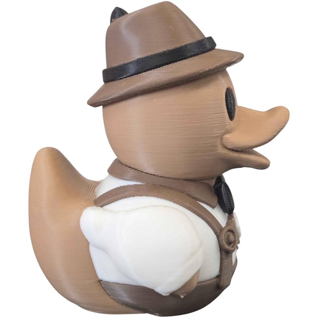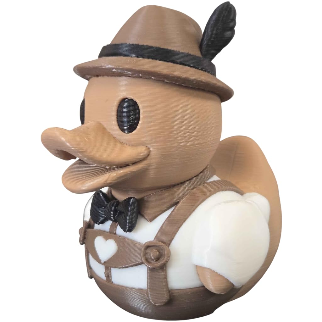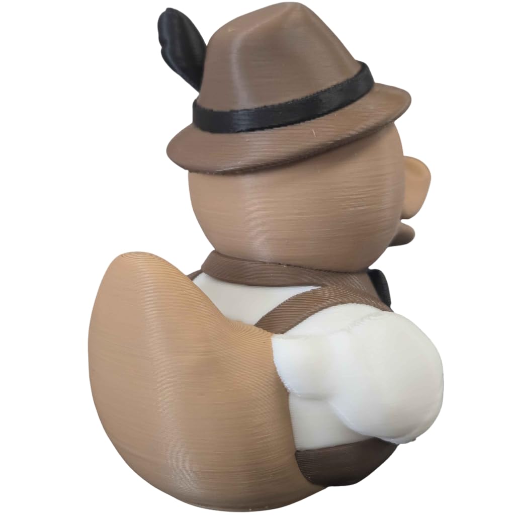 The German Oktoberfest Duck Figurine – Bavarian Lederhosen Duck Collectible | Cute Alpine Rubber Duck-Inspired Decor for Desk, Shelf or Gift is a decorative 3D printed collectible from 3DCentral’s extensive duck collection. Printed at our Quebec-based industrial print farm, this piece captures the playful spirit of rubber duck culture with modern additive manufacturing precision. Premium PLA filament ensures vibrant colors and a smooth, display-ready finish straight out of the box.