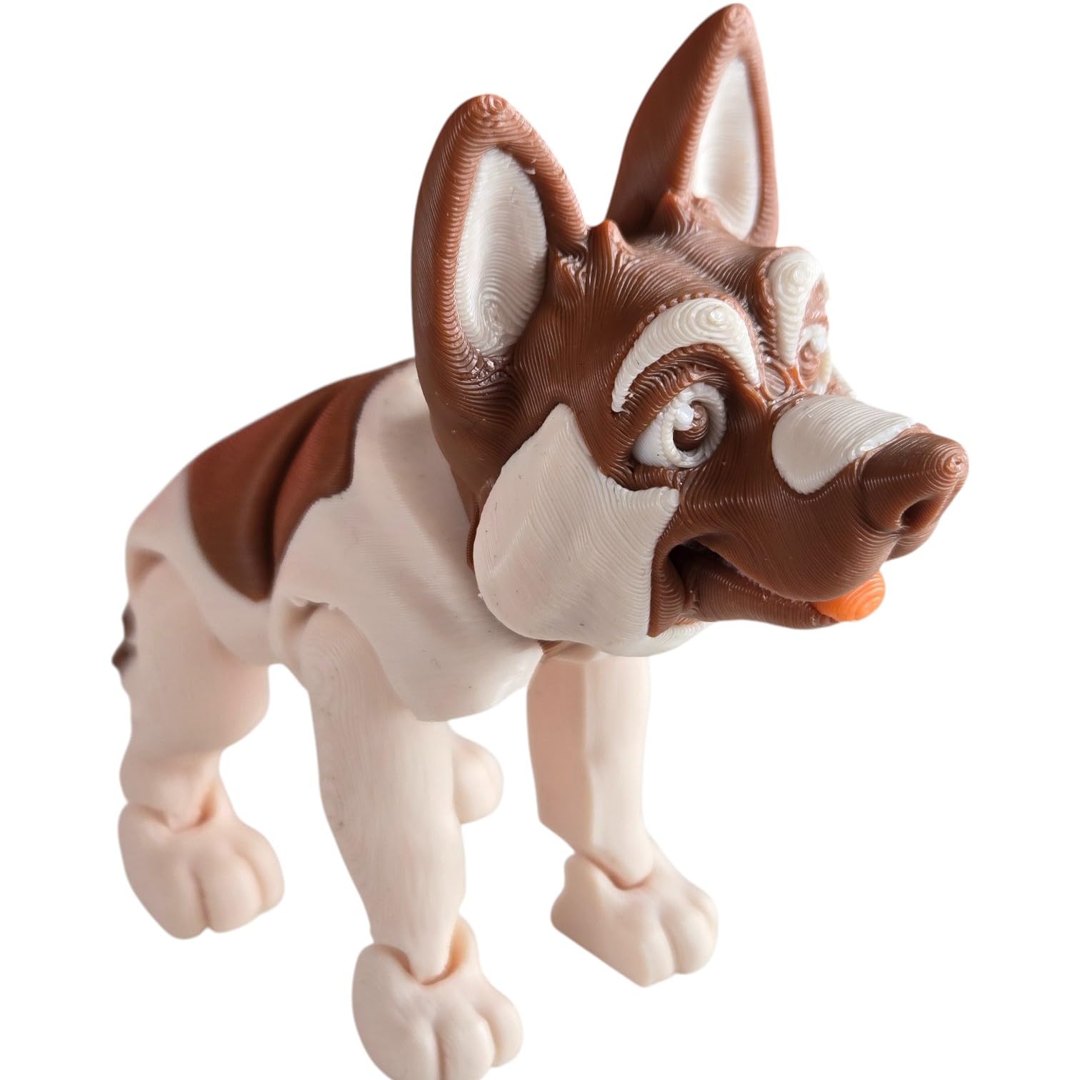 Experience the Jerry The German Shepherd Articulated Figurine – Poseable Dog Fidget Collectible for Desk or Shelf Display — a print-in-place articulated collectible from our Quebec print farm. Every joint is functional from the moment you open the package, with no glue, screws, or assembly needed. This engineering marvel is produced in premium PLA filament with settings calibrated for optimal joint movement and body rigidity.
