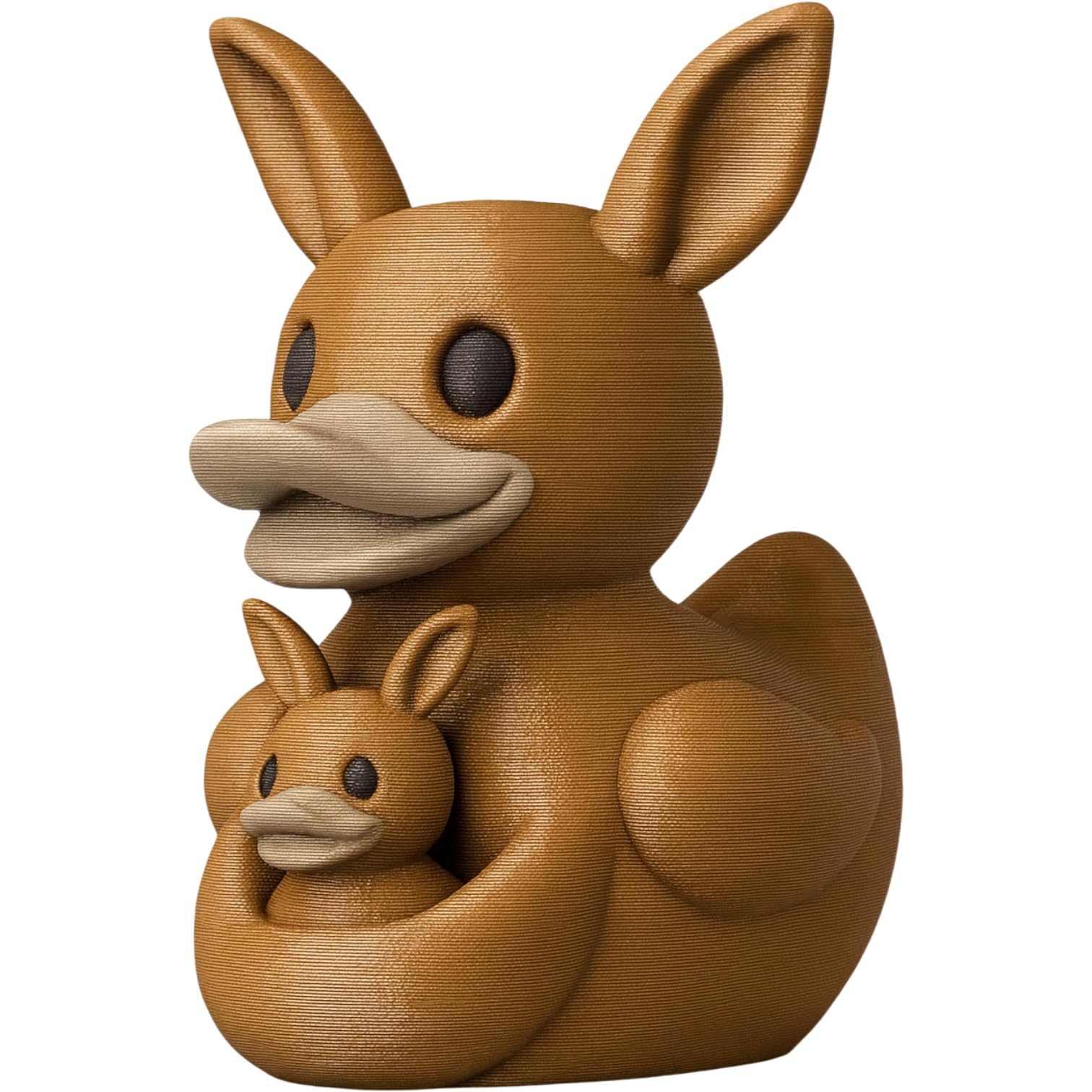 The Kangaroo Duck Figurine with Baby Joey – Quirky Animal Mashup Collectible for Desk or Shelf Display is a decorative 3D printed collectible from 3DCentral’s extensive duck collection. Printed at our Quebec-based industrial print farm, this piece captures the playful spirit of rubber duck culture with modern additive manufacturing precision. Premium PLA filament ensures vibrant colors and a smooth, display-ready finish straight out of the box.