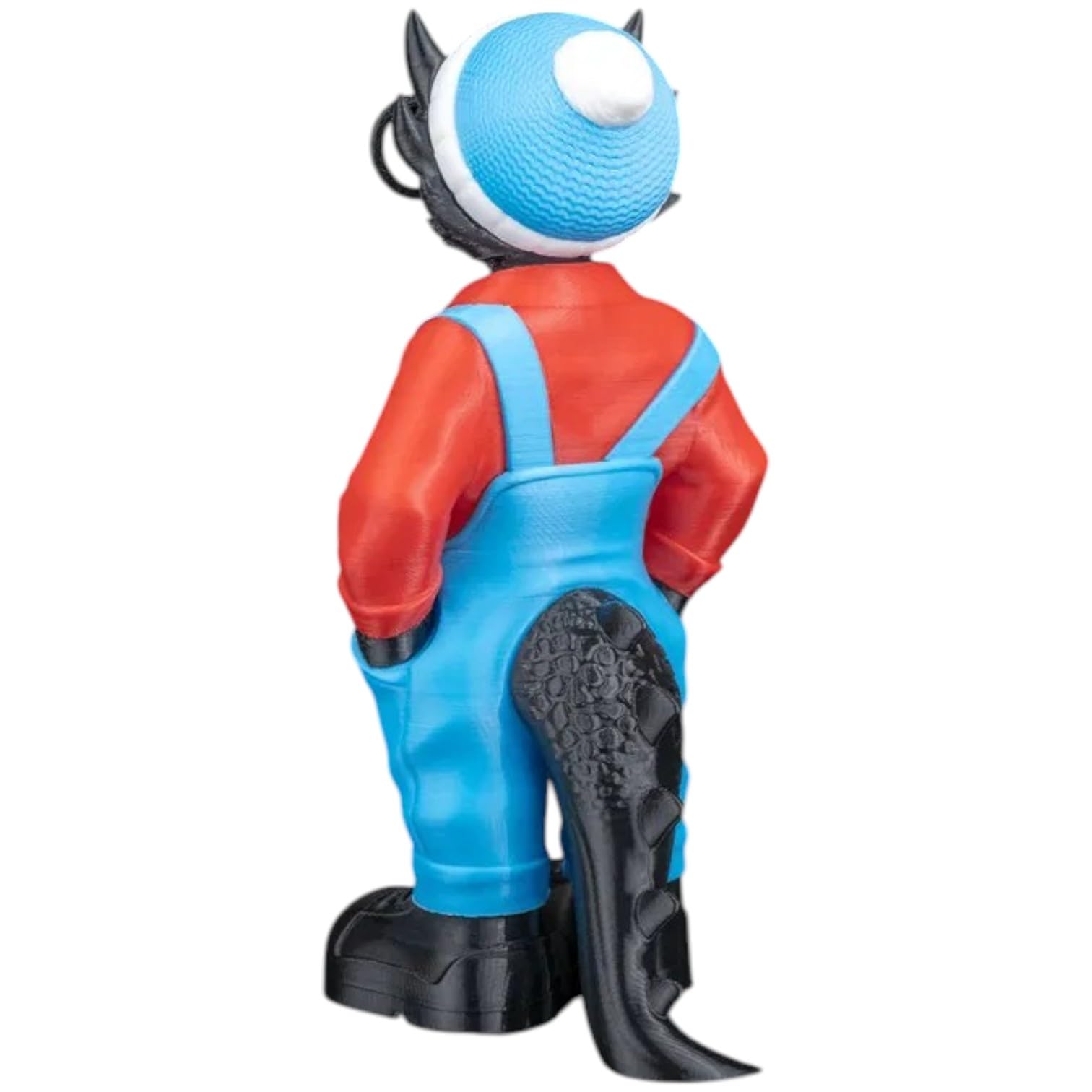 About the Khar’loseth “Carlos” Urban Kaiju Figurine – 3D Printed Monster in Overalls with Cap – Designer Shelf Display for Collectors, Teens & Adults