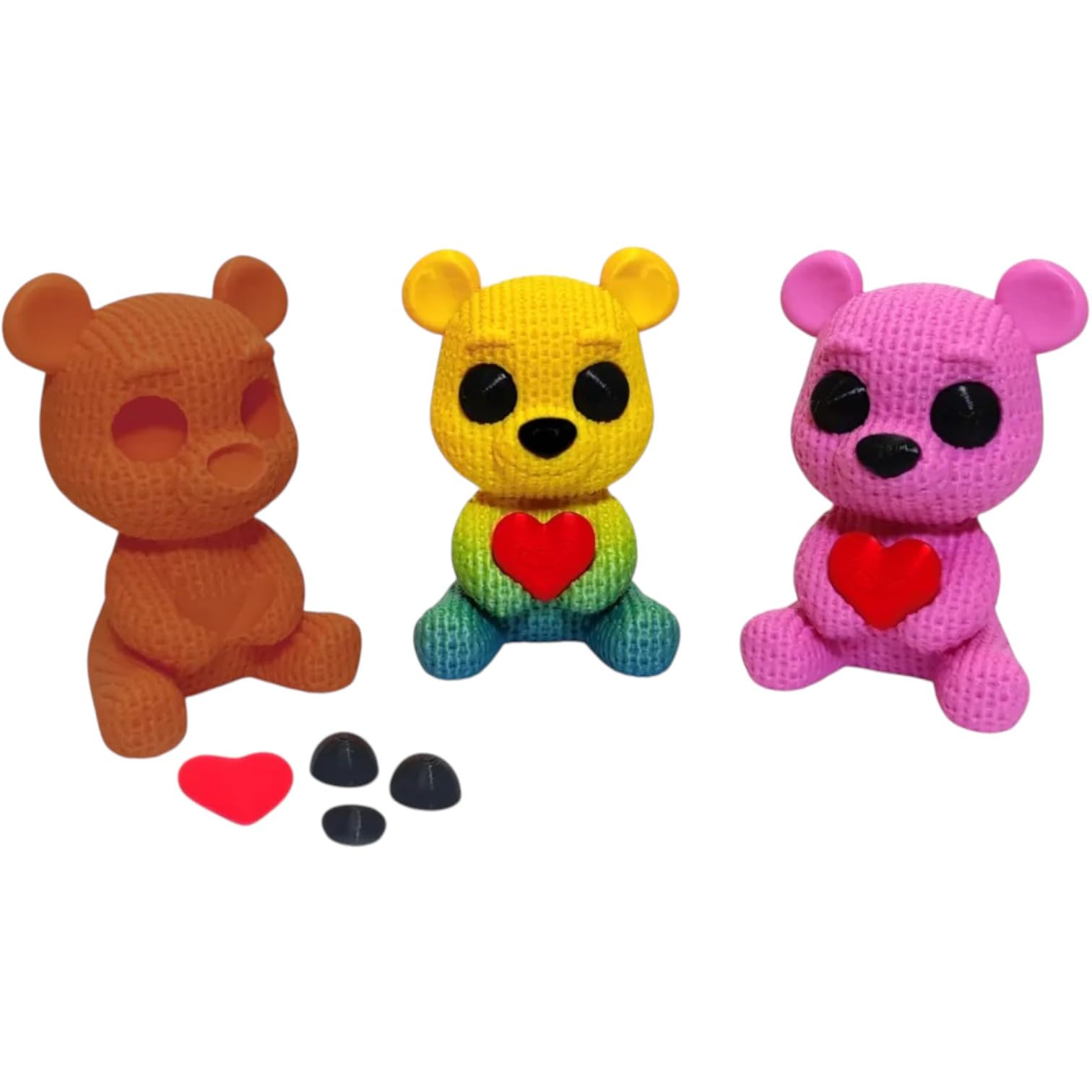 The Knitted Love Bear Figurine – Cute Valentine’s Day Heart Bear with Snap-in Eyes & Cozy Texture is a decorative teddy bear figurine from 3DCentral’s collectible series. 3D printed on our Quebec-based print farm using premium PLA, this piece captures the timeless charm of stuffed bears through modern manufacturing — textured surfaces mimic stitching and fur patterns with remarkable fidelity.