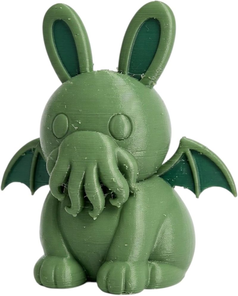 Designed by our creative team at 3DCentral. Every Kthulhu Bunny Collectible Figurine – Unique is produced on our fleet of 200+ industrial 3D printers in Laval, Quebec. We calibrate each machine for the specific demands of decorative collectibles — optimizing layer adhesion, surface finish, and color accuracy. The result is a display-ready piece that captures fine textures and proportions faithfully from the original digital sculpture.