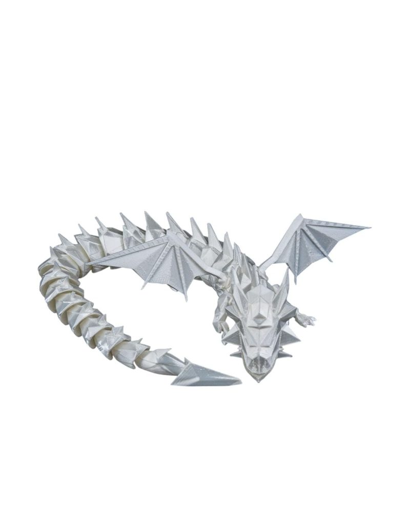 The Lord of The Folds Articulated Dragon Figurine – Fantasy Display Sculpture for Desk, Shelf, or Collection is an articulated figurine from 3DCentral — printed as a single piece with fully movable joints. No assembly required. Arms, legs, tails, and other appendages move freely right out of the box, showcasing one of the most impressive capabilities of modern 3D printing technology. Produced on our Quebec-based industrial print farm.