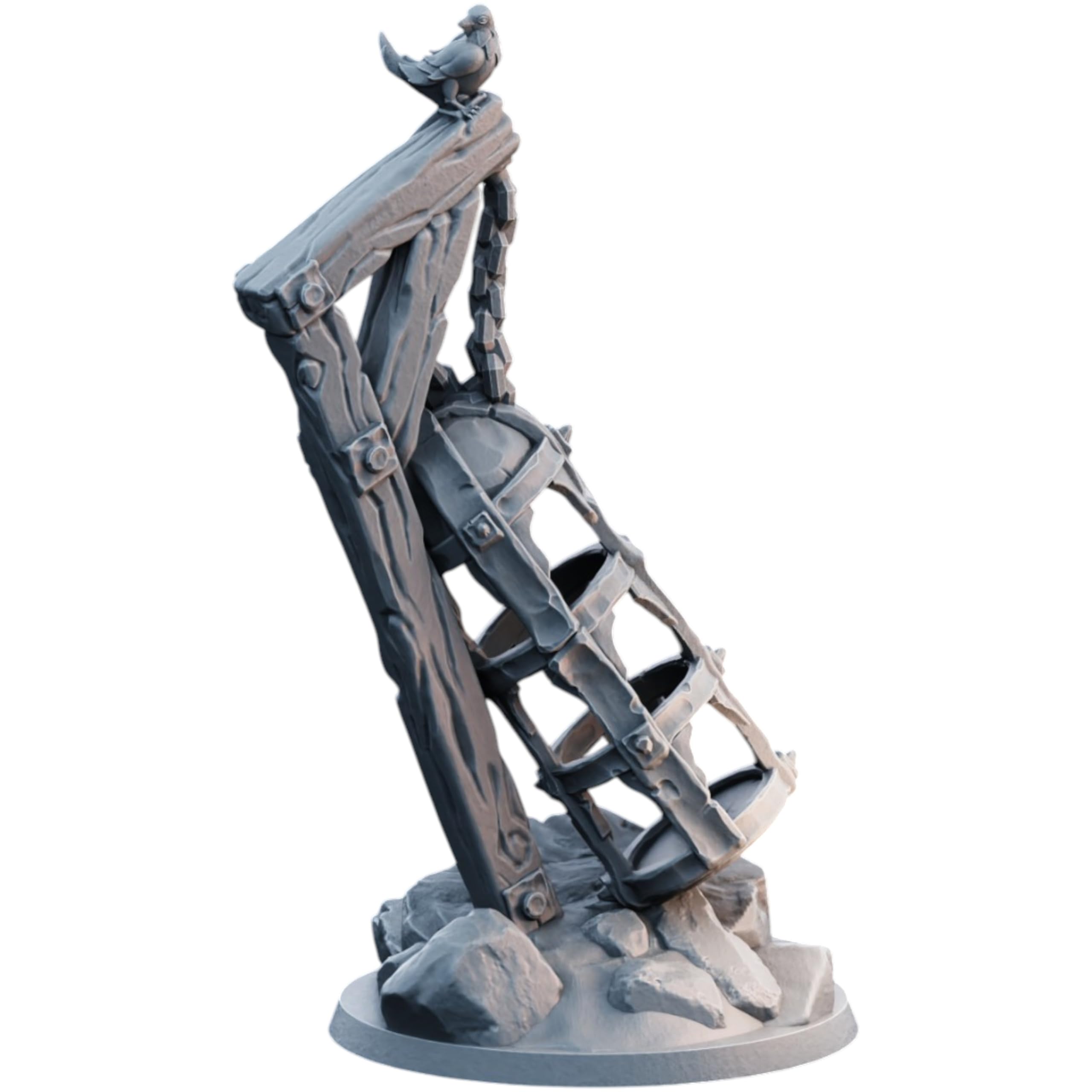 The Medieval Hanging Cage Terrain Miniature for Tabletop RPGs, Wargaming & Dioramas – Highly Detailed Resin Scenery Piece is a compact articulated miniature from 3DCentral — pocket-sized yet fully poseable. Printed in a single piece with functional joints at our Quebec-based print farm. No assembly required. These miniatures prove that great things come in small packages.
