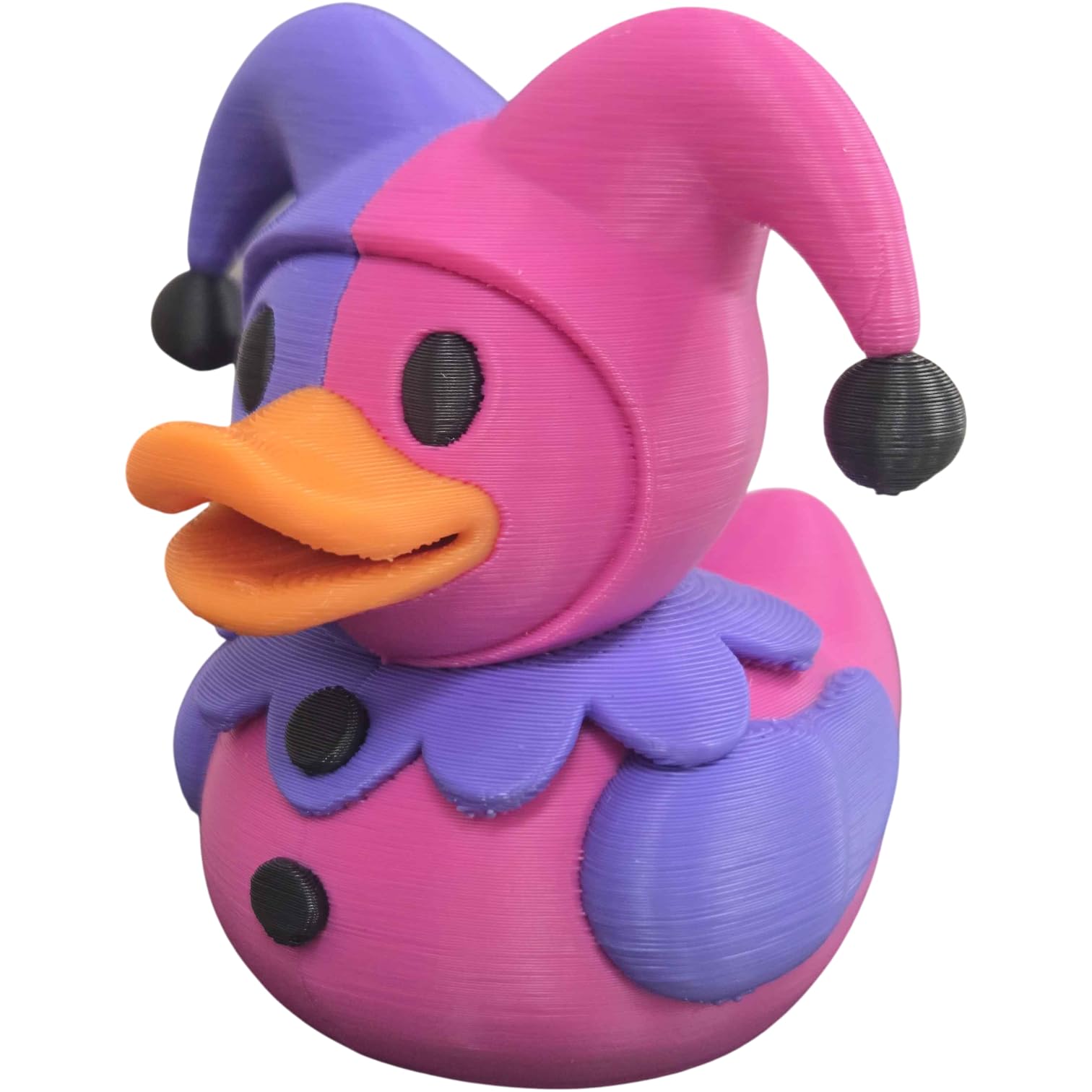 The Medieval Jester Duck Figurine – Colorful Collectible Duck Decor for Desk, Shelf or Gifting – Funny Harlequin Rubber Duck Alternative is a decorative 3D printed collectible from 3DCentral’s extensive duck collection. Printed at our Quebec-based industrial print farm, this piece captures the playful spirit of rubber duck culture with modern additive manufacturing precision. Premium PLA filament ensures vibrant colors and a smooth, display-ready finish straight out of the box.
