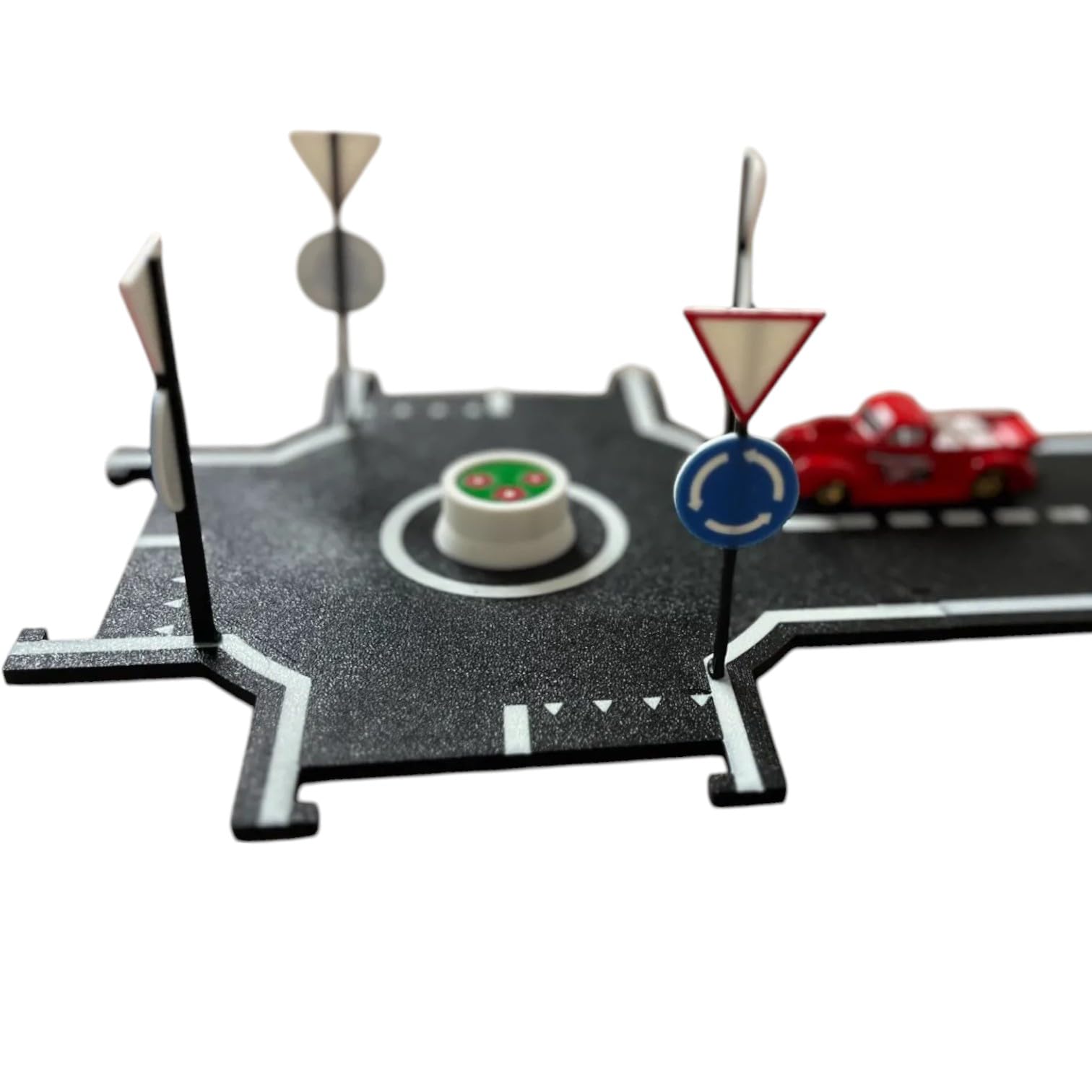 About the Modular Roundabout Road Tile for Hot Wheels – 3D Printed Intersection with Yield Signs & Center Island – Expandable Track Accessory