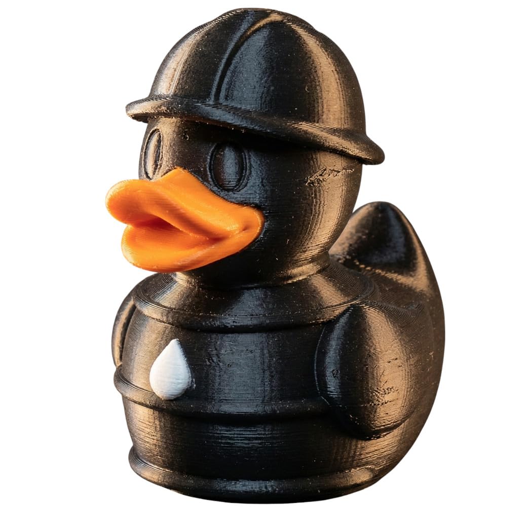 The Oil Barrel Duck Figurine – Funny Rubber Duck Collectible in Black Barrel Design with Hard Hat – Unique Desk Decor, Gag Gift or Bath Display for Teens & Adults is a decorative 3D printed collectible from 3DCentral’s extensive duck collection. Printed at our Quebec-based industrial print farm, this piece captures the playful spirit of rubber duck culture with modern additive manufacturing precision. Premium PLA filament ensures vibrant colors and a smooth, display-ready finish straight out of the box.