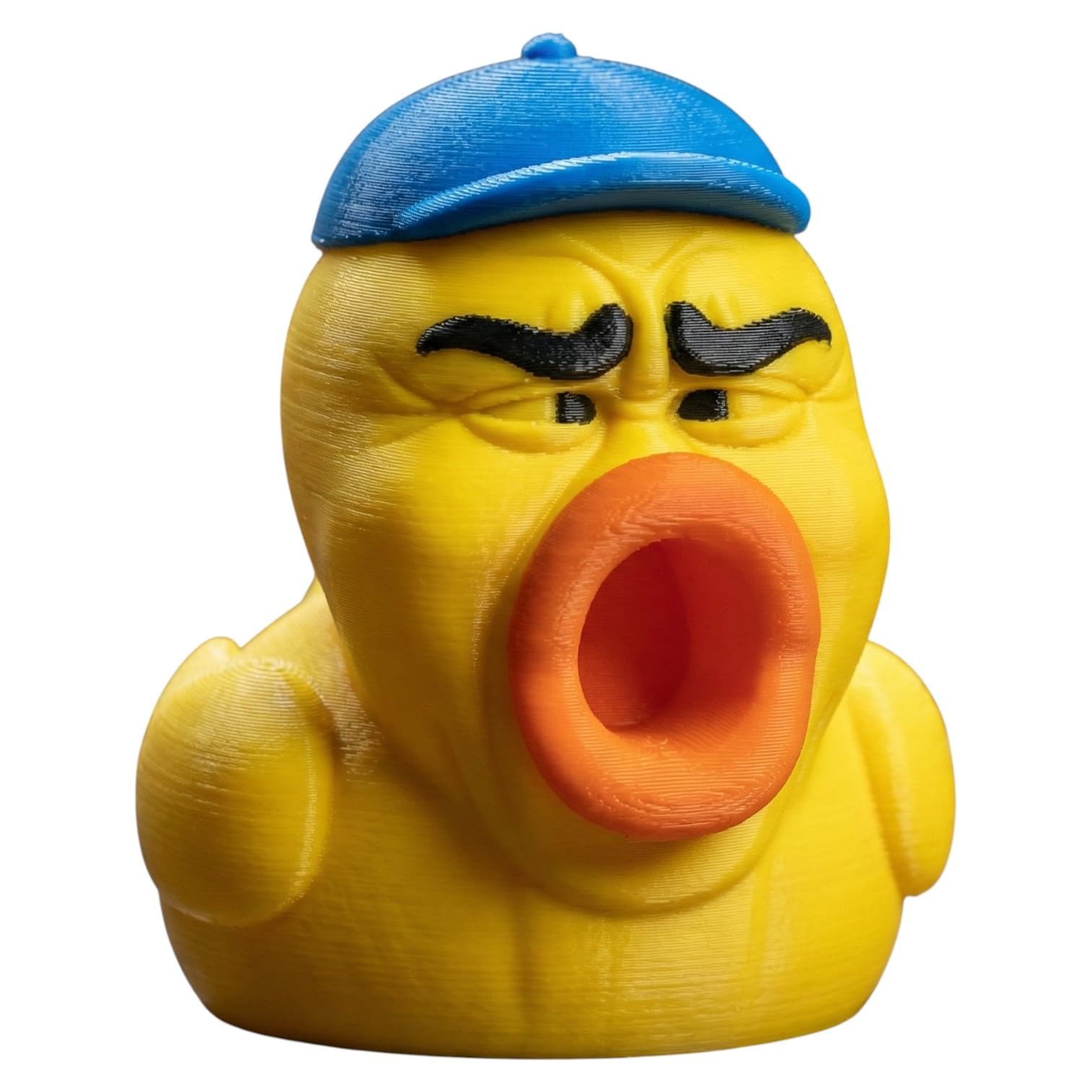 The Oof Duck Figurine – Funny Yellow Duck Collectible with Screaming Face and Hat – Quirky Desk Collectible for Adults, Gamers & Meme Lovers is a decorative 3D printed collectible from 3DCentral’s extensive duck collection. Printed at our Quebec-based industrial print farm, this piece captures the playful spirit of rubber duck culture with modern additive manufacturing precision. Premium PLA filament ensures vibrant colors and a smooth, display-ready finish straight out of the box.