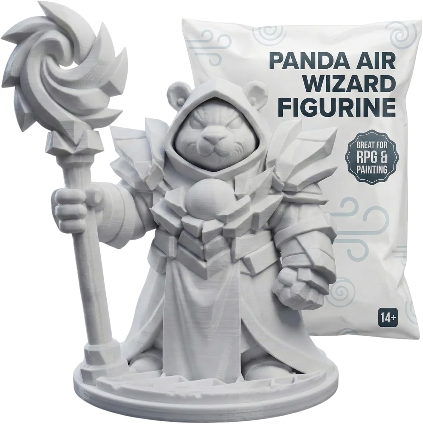 About the Panda Air Wizard Figurine – 36mm Fantasy Miniature for Painting, Display & RPG Use – Elemental Mage Model – 3D Printed Collectible from Canada