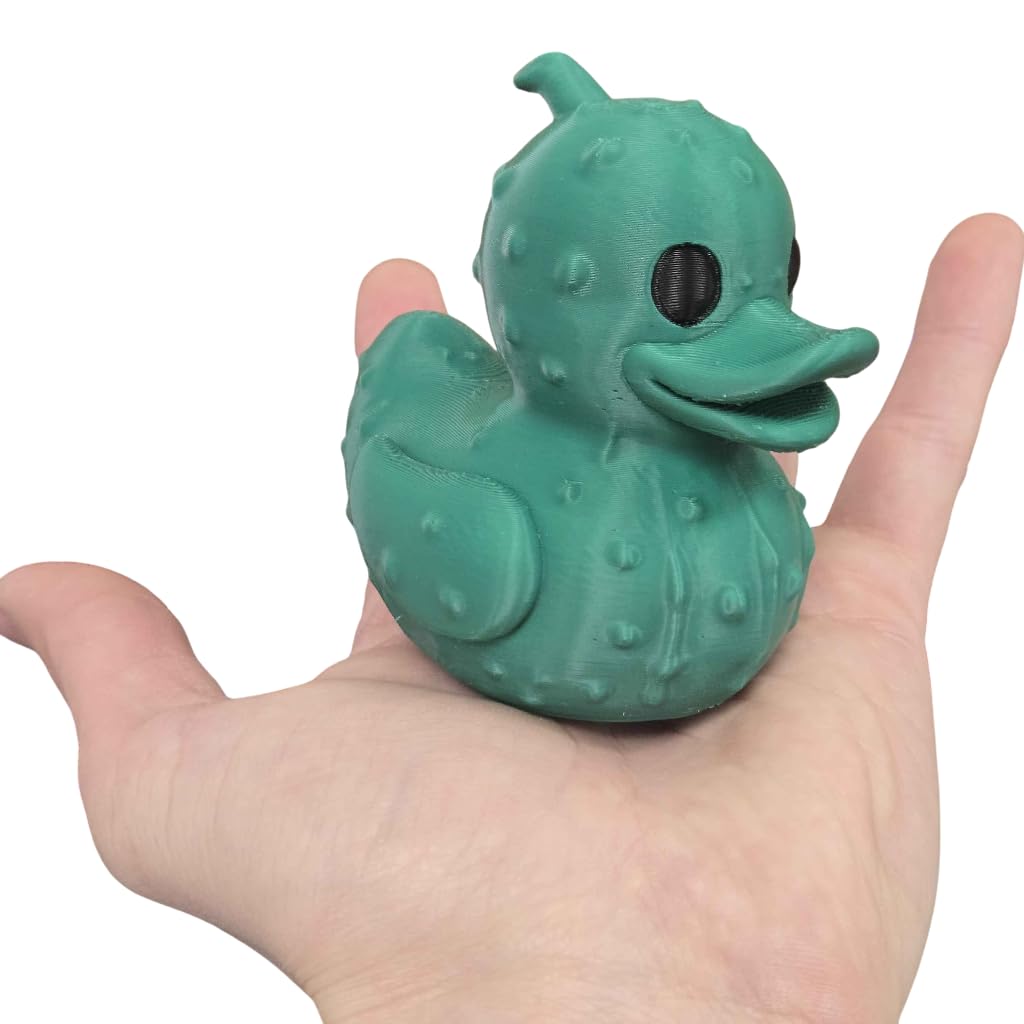 Add the Pickle Duck Figurine – Quirky Cucumber-Inspired Rubber Duck Sculpture for Shelf Decor, Desk Display, or Collectors to your shelf — a unique 3D printed duck collectible from our Quebec print farm. This piece is part of a 1,000+ design duck catalog, each printed in premium PLA filament for rich color and fine detail. Every duck we produce reflects our commitment to small-batch quality and creative design.